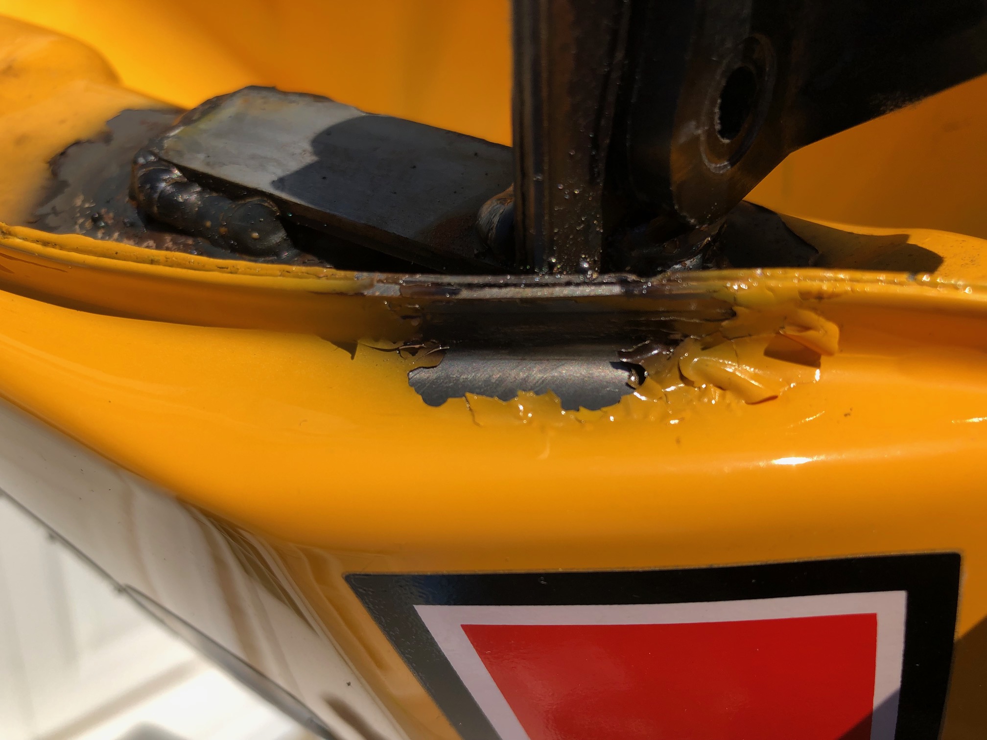 The major fabrication for the Street Tracker was adapting a fuel tank from a mid-70's Suzuki TS125 onto a modern DRZ. It required welding bosses/mounting points onto the DRZ frame and brackets onto the TS tank. My buddy who did the welding for me got a little over zealous on one of the brackets and heated the tank to the point where the pristine 40+ year old paint bubbled. I've attached a photo of the damage.