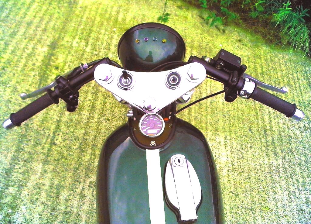 Very nice build. Is that a Yamaha tank on there?  Looks like it could be off of a xs400.  I like the way you "countered" the tank line with the seat line.  The "norm" is to go for a straight line.  Looks like you made really good lemonade with a lemon.  Nice.