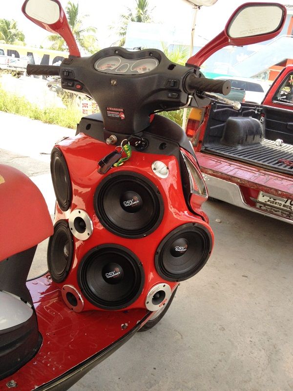 Hahaha that would be amazing. But I’ll post pictures when I get the bike back together. It’s just two speakers mounted to my handlebars. I’m a new rider so I wanted to be able to hear my surroundings as well.