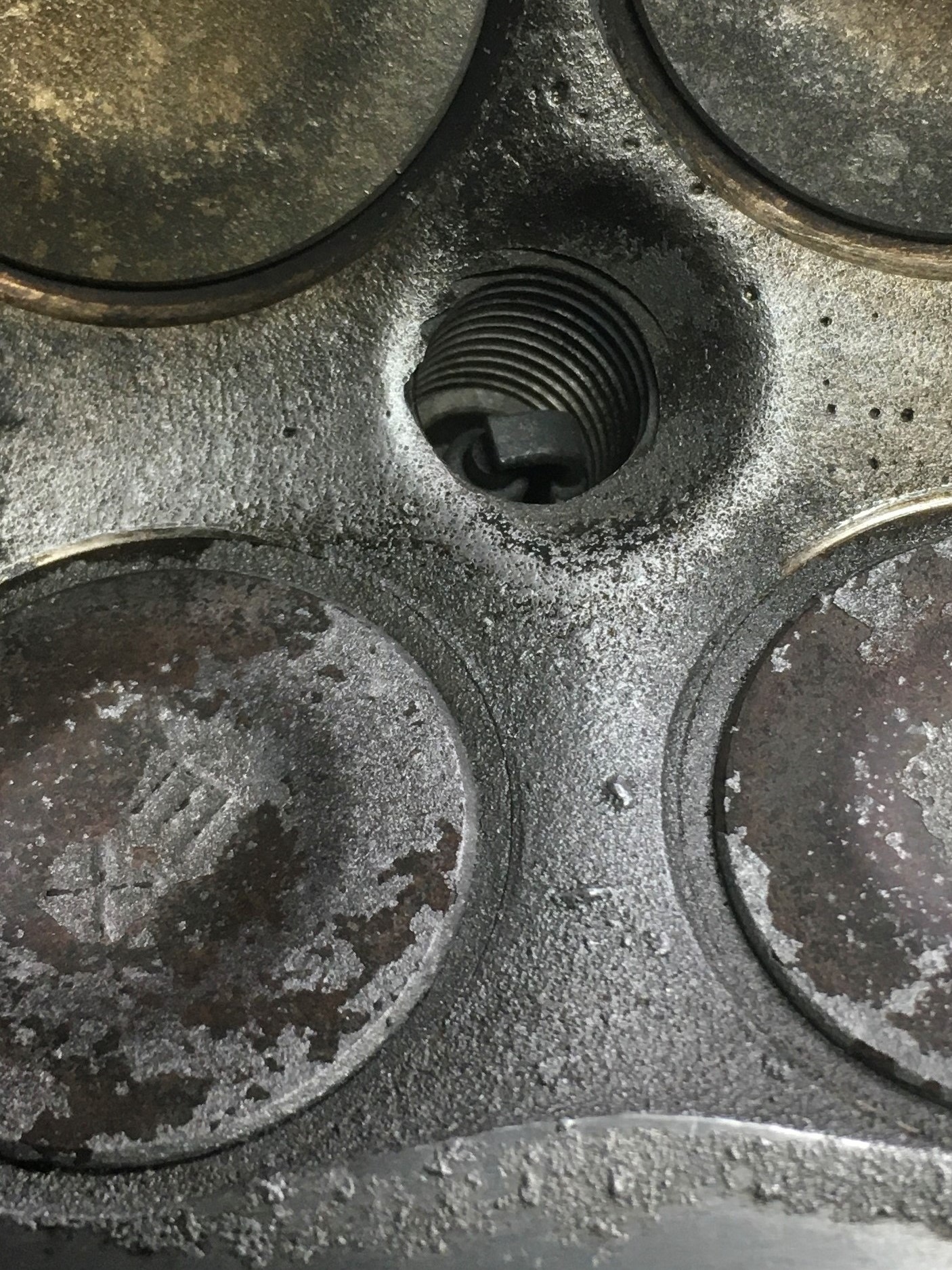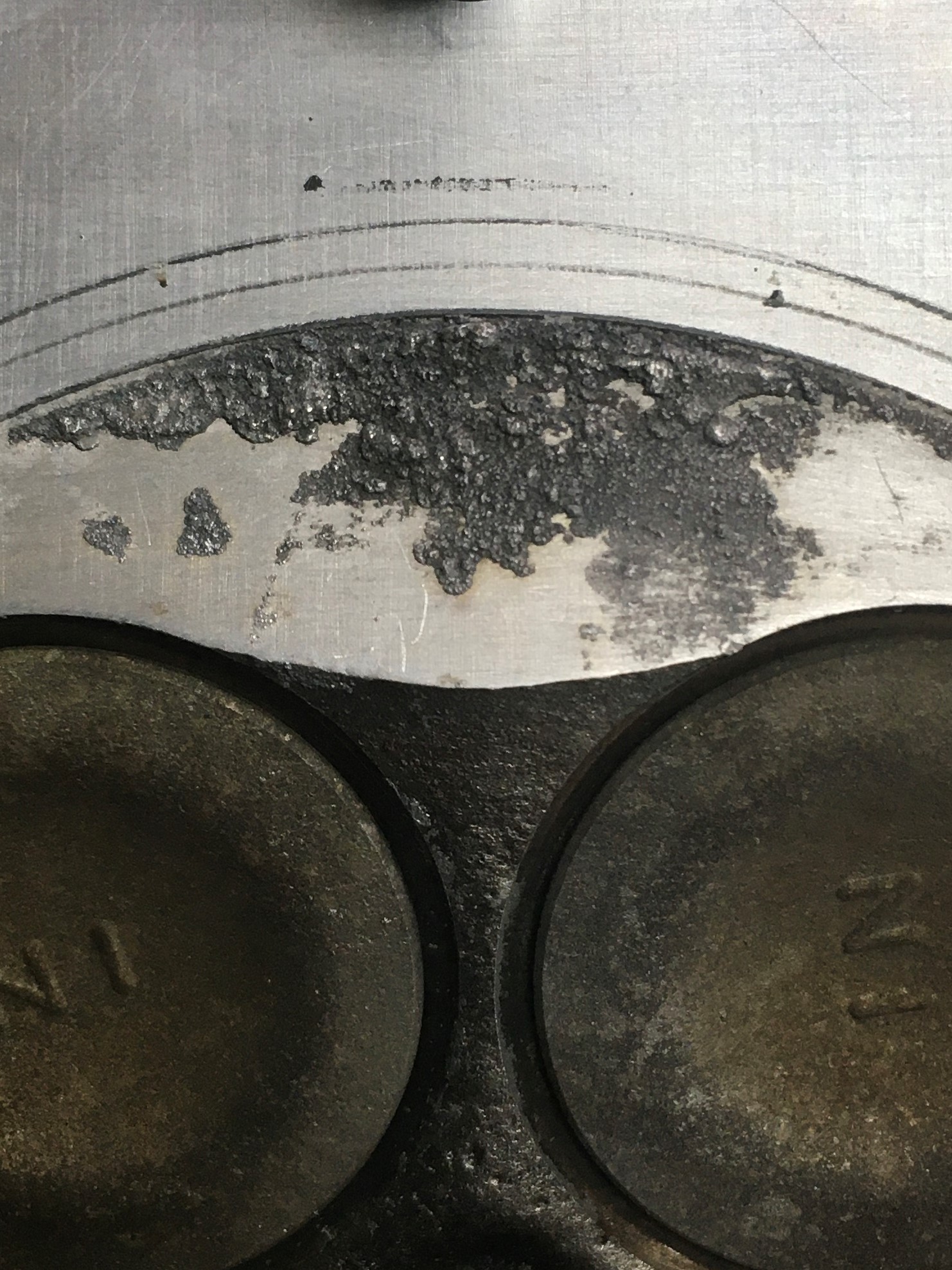 Look at the beautiful flame spray job on the combustion chamber pocket.  I don’t think I’ve ever seen anything like this.  A good 55 years of wrenching and never seen a piston liquify and get deposited so nicely over the combustion chamber.