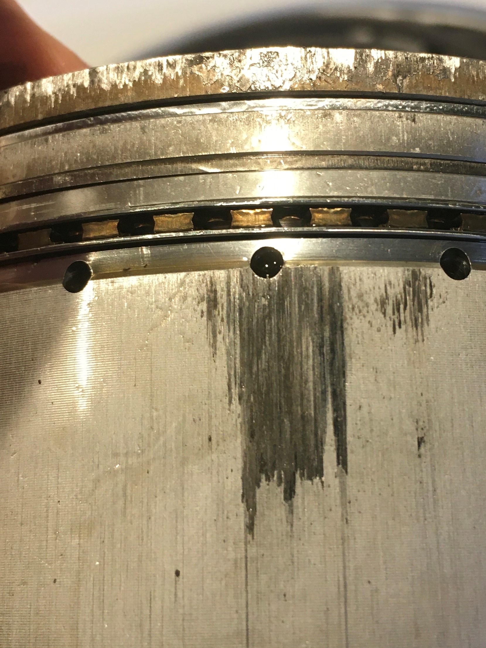 In the middle of all that testing, I sucked in a cylinder base gasket, so I had to tear it down.  At that time, the piston assembly looked great.  Not a hint of trouble.