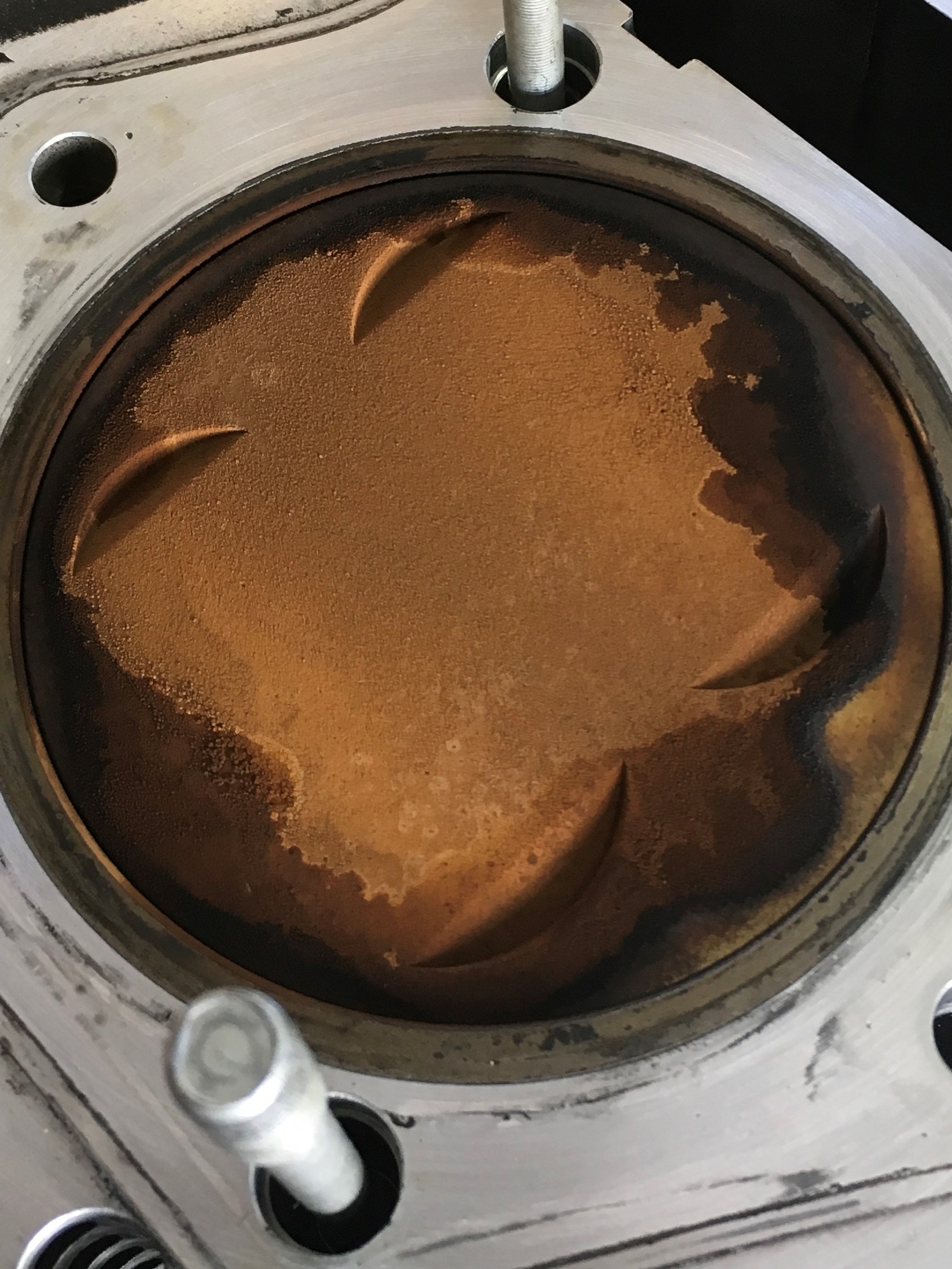 The combustion chamber looked OK.  It almost looked as though nothing bad had occurred, simply the standard layer of carbon deposits.
