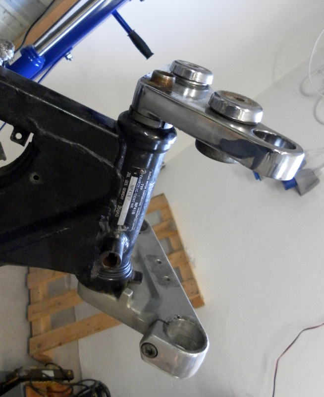I need to get these things of the frame so I can sand blast and repaint the frame and also to replace the bearings that are really bad. The steering lock was only attached with a small "wood screw" or something like that so I suspect someone before me has removed/replaced it and then just put it back in with whatever fastening device they could find.