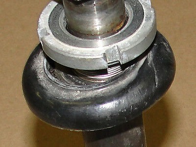 Back off spanner nut and moderately tighten against the underside of the triple tree, whack, back off spanner nut some more, whack, etc.