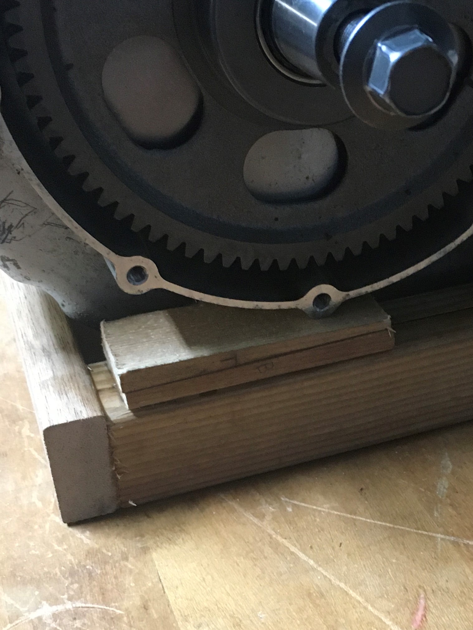 I am in the middle of getting my own stand so I can start replacing the cam chain. I got some pieces of L-shaped that a friend will help me weld and another friend is making the spacers. I will try and mount everything using the two lowest frame mount holes and original 180mm bolt.