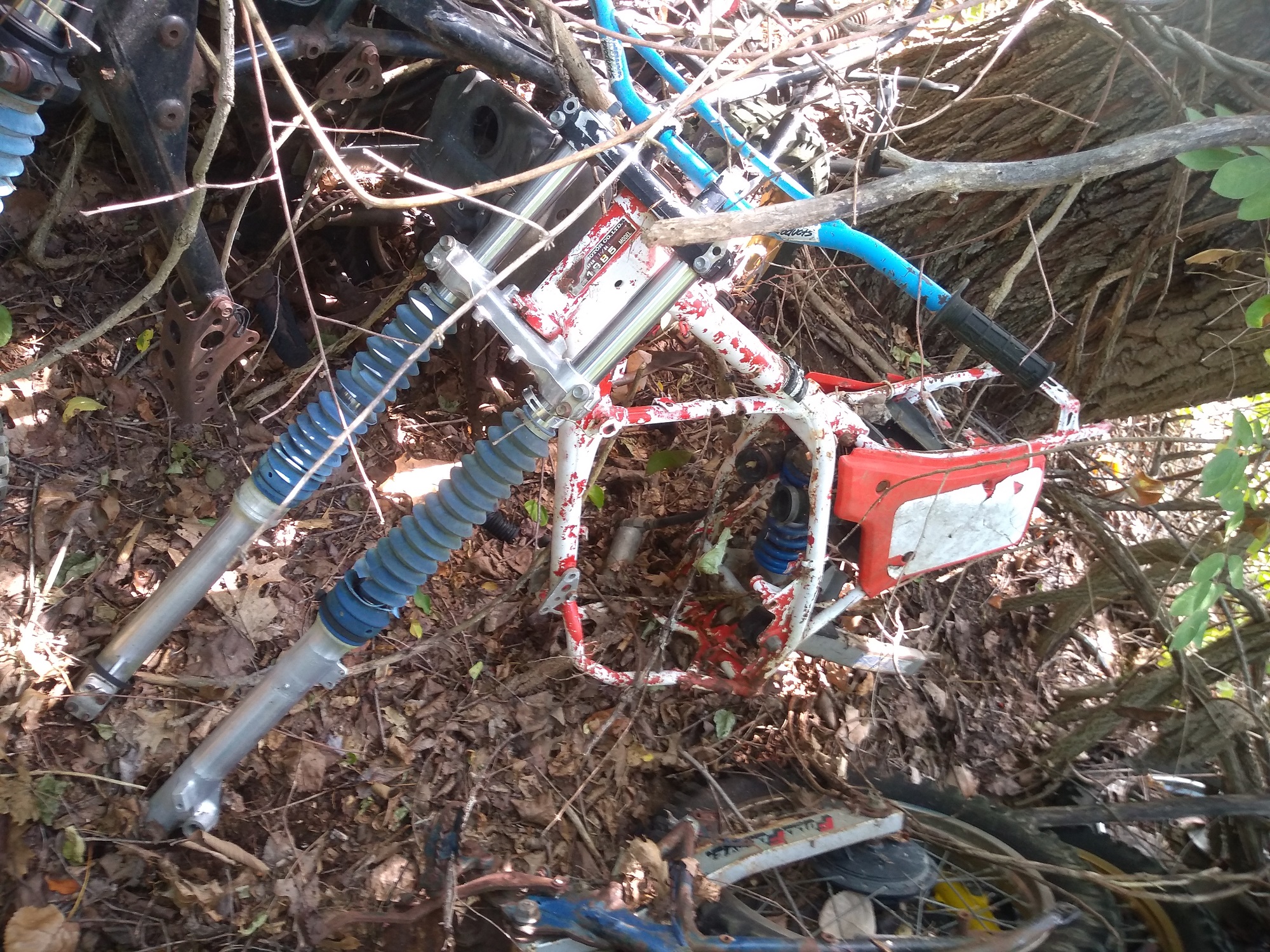 Local vintage motorcycle shop has a junk yard full of vintage dirt bikes.  I already found a mono shock Suzuki dirt bike roller!  He wants $200.  I think thats steep....