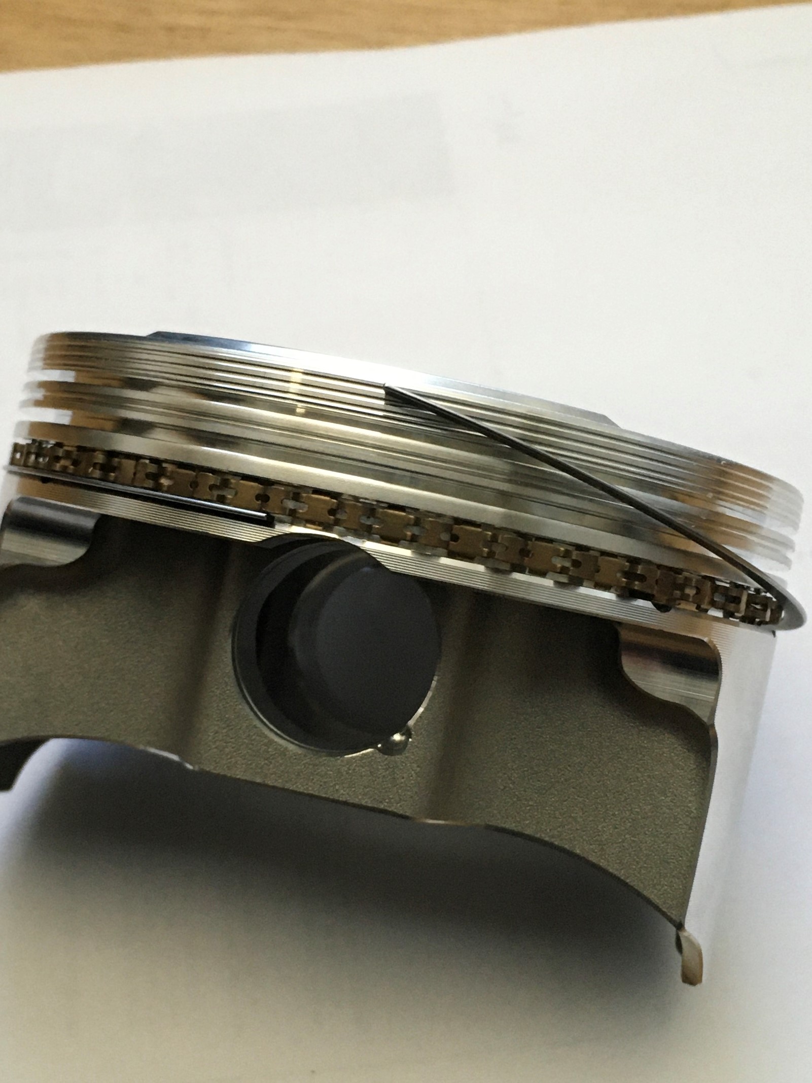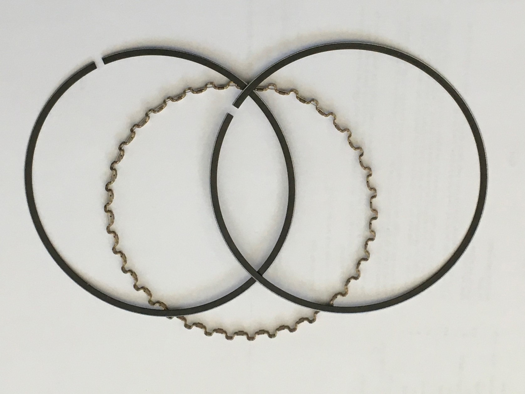 The Wiseco kit uses a three-piece oil ring. The wavy thing is called an expander, and the two rings are referred to as scrapers or rails. Their gap should be a minimum of .010”.