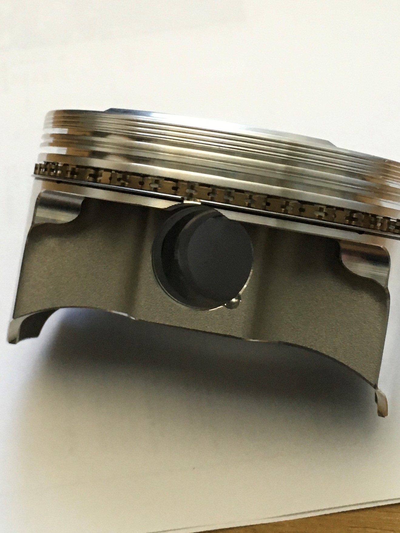 Use the same process for the top ring. When I was finished, the top ring gap was .020” and the 2nd ring gap was .022”. The butts were parallel. Note the letter “N” on the top ring. When the ring is installed on the piston, that marking must face up.