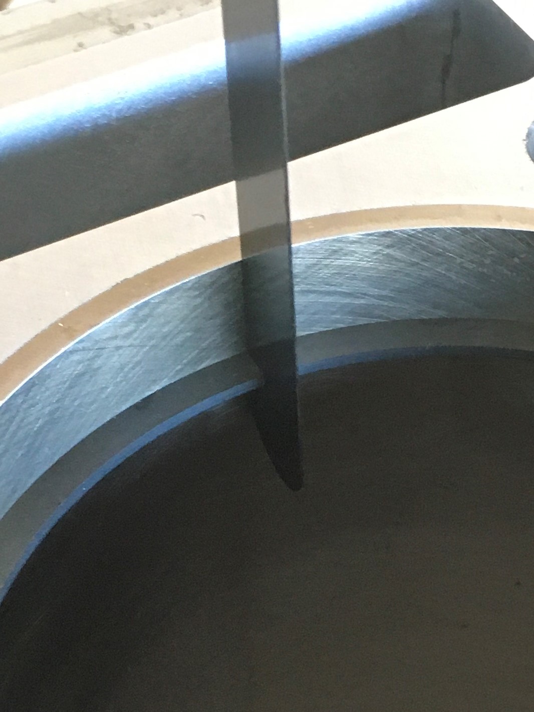 Use a feeler gage to check the gap. The ring must be positioned square in the bore. I made this tool from an ABS pipe fitting. It positions the ring exactly ½” down the bore and ensures the ring is square (1/2” down the bore at all points around the circumference of the ring). The ring must be square to get an accurate measurement.