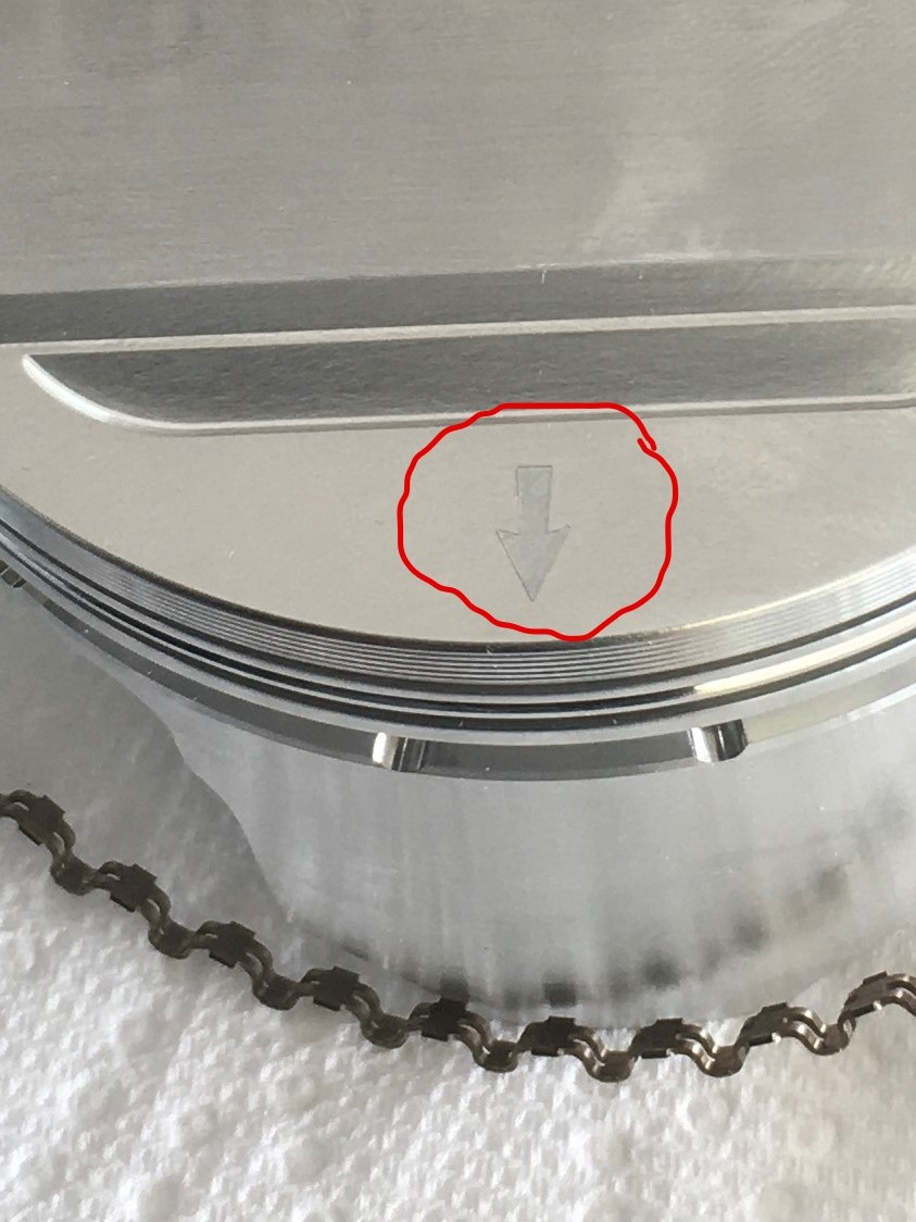 While on the subject of markings, see this arrow on the top of the piston? It must face forward when the piston is installed on the rod.