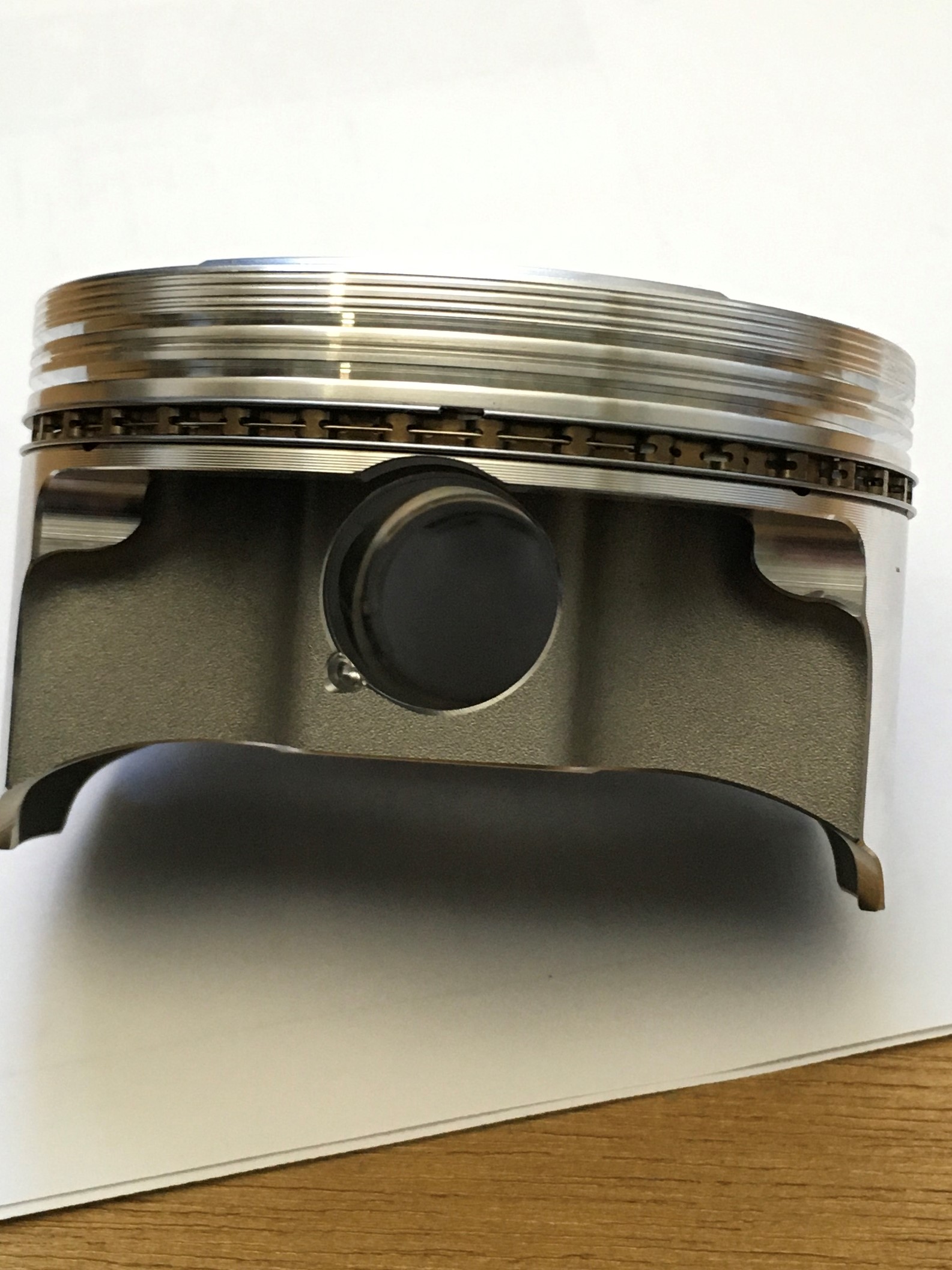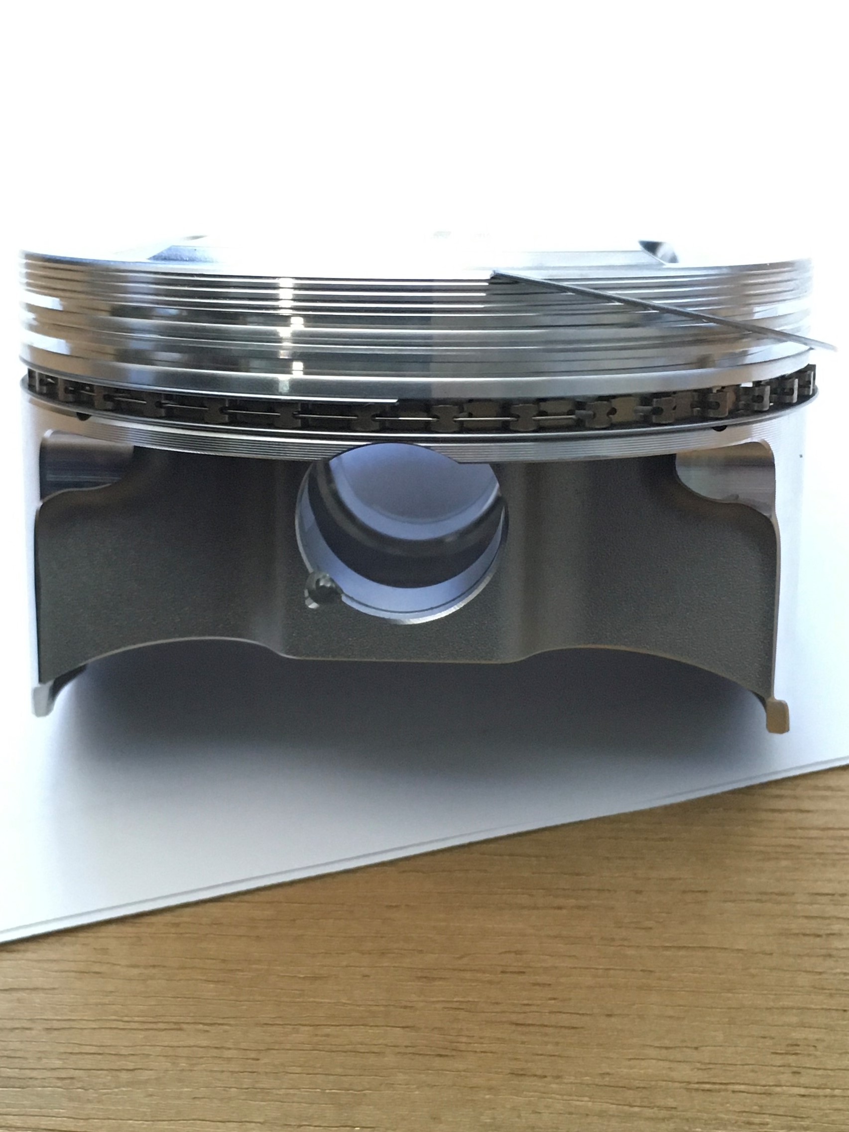 Place a proper piston support between the crankcase and the piston. The piston must be properly supported in order to install the cylinder over the piston & rings. Sorry, this is a picture of a stock piston, but you get the idea.