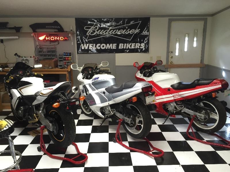 Wow, nice place! Cool bikes! I remember those first generation CBR600's, I looked at those, but got a Yamaha FZR instead. Good times!