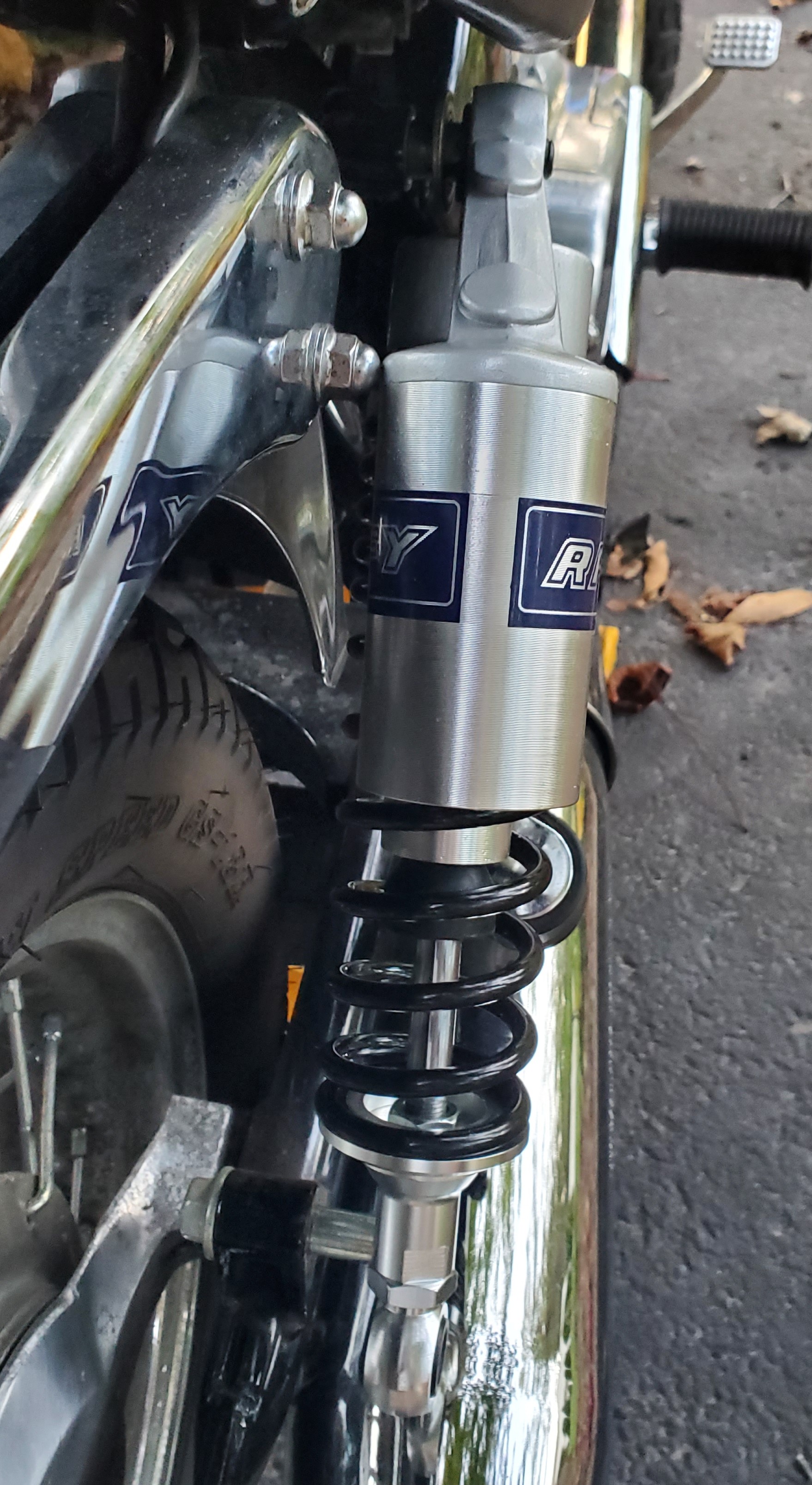Got the shocks on. It took about 2 hours mostly due to my ignorance. I thought it would be easier to get the shocks on while the wheel was off, but I couldn't put the axle back in with them on due to the change in swing arm angle and conflict with muffler. This meant taking them off and putting back on again. Otherwise it was fairly easy. Getting the rear wheel back on can be tough. Not much room between the swingarm and exhaust now, but I've ordered a new exhaust already.