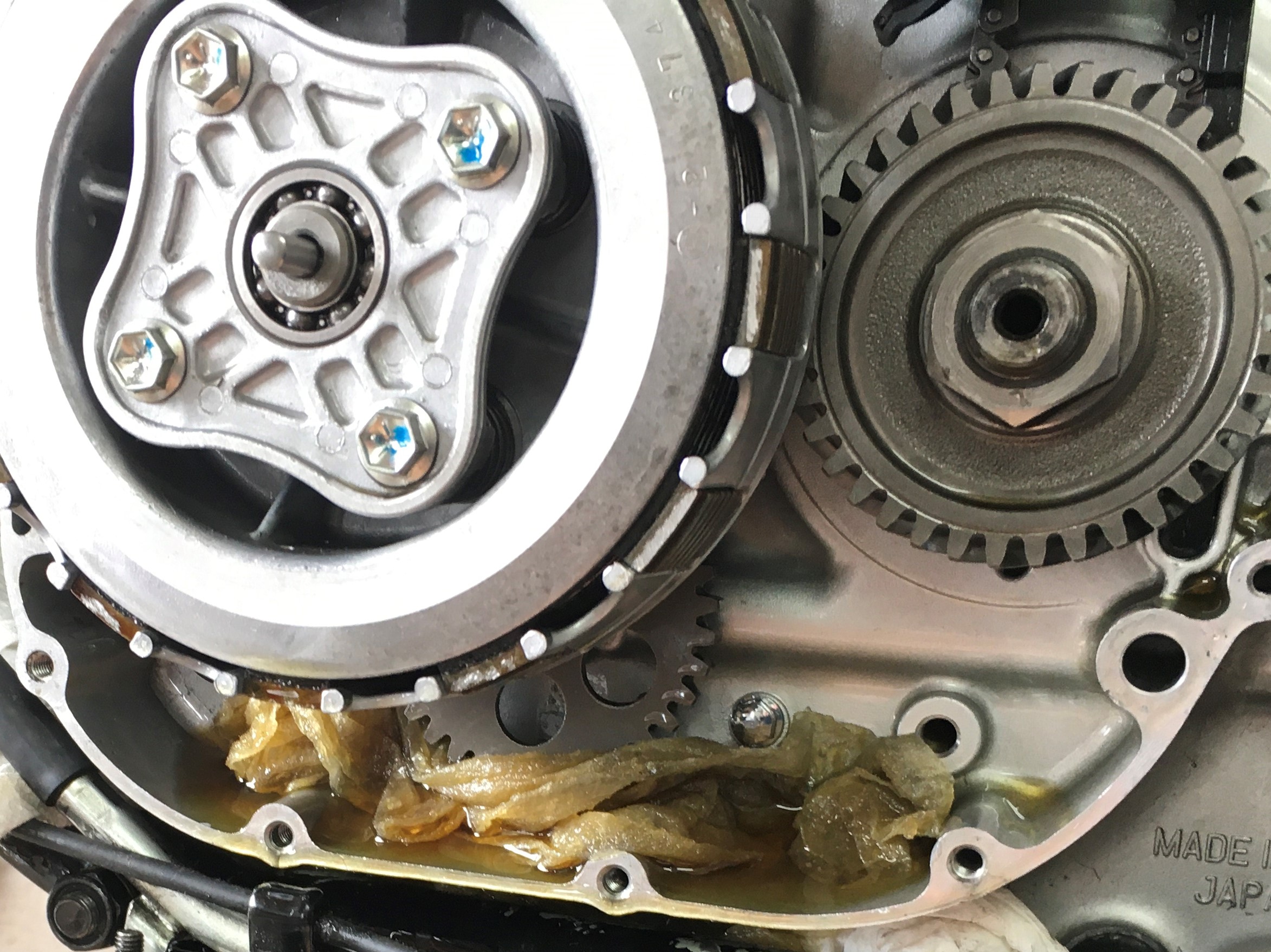 I like to plug up the holes in the crankcase with paper towels to keep little parts from getting lost in the engine.  It’s easy for an old geezer wandering around in a fog to forget something like that.  I guess I have to come up with a tag-out system.  This could have been disastrous.  From now on, I’m gonna place a zip tie through one of the cover bolt-holes whenever I use cleanliness plugs.  Hopefully, that will remind me to check before I install the cover.  How did I miss this???