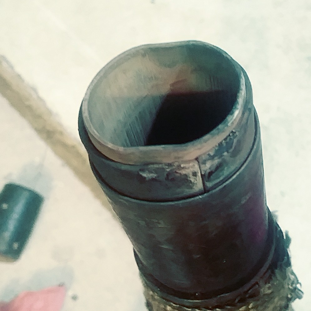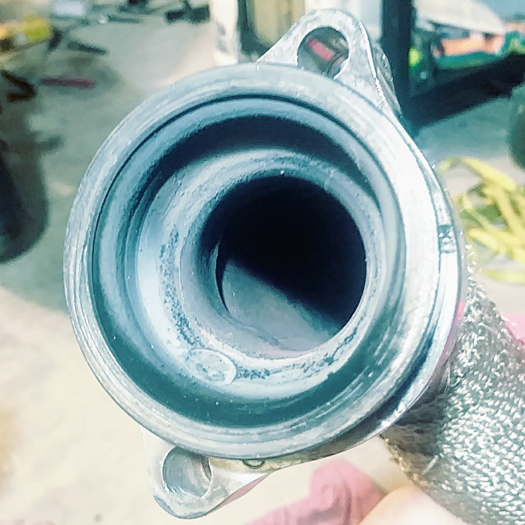 I’ve read several reports of the inner exhaust tube inside diameter- 1.3”, and 1.27” -but don’t have a caliper to throw on the part, take a measurement. Regard the 2 attached images. The first is the header top end. Notice a couple things- the opening is smaller than the inner pipe diameter, and there is a hump on the bottom of the opening, constricting it further. The second image is the other end of the exhaust pipe; a few things of interest here- between the inner and outer pipe is a split spacer, and opposing faces of the inner tube have been flattened. Measuring across the undeformed axis, I find 34 mm, or about 1.34”. I reckon metric pipe, coming from Japan- so, here in the States, what would be a close equivalent?