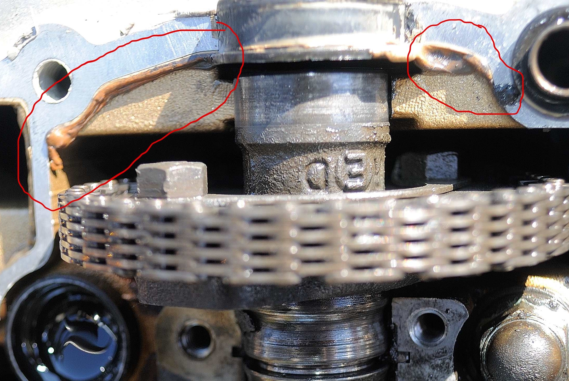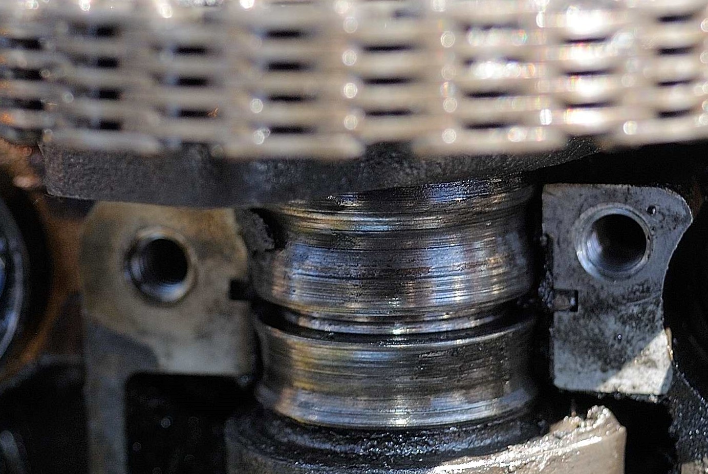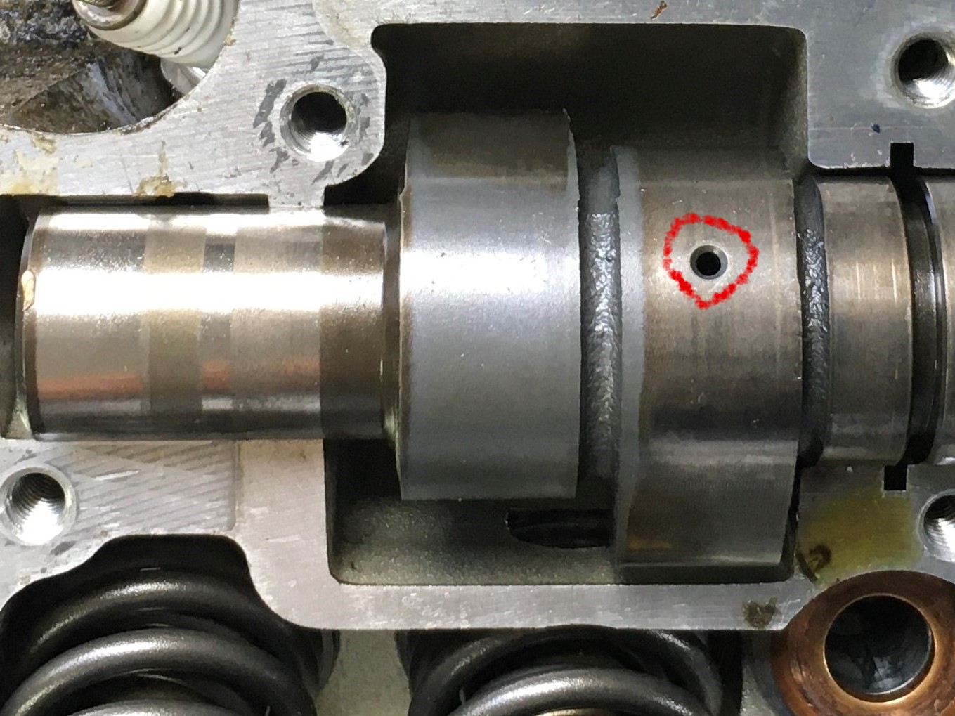 I did not wipe out underneath the came lobes. That area had some oil down there but definitely not filled. That small cutout near the bottom of the intake valve spring seems to be the only place where oil can get in/out of the reservoir. I suppose the cam chain dragging oil up to the head would explain why I was still getting oil leaking out of the head plug even if there was little or no oil pressure. What do you think? Seems like an awful lot destruction just from low oil.