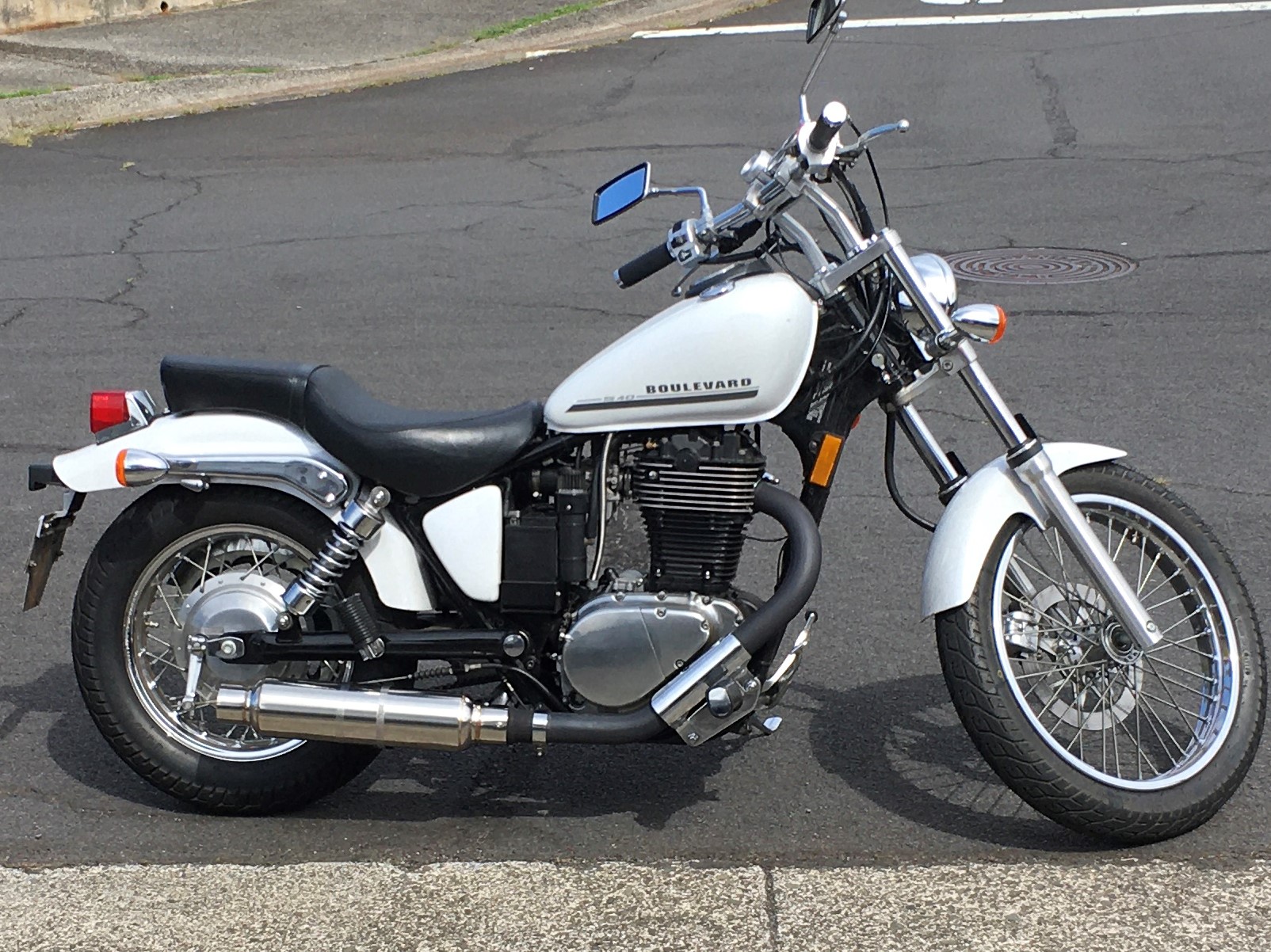 Mac (chrome):  In a word, obnoxious.  Emits an extremely loud, high-frequency snap, crackle, pop.  The absence of any wool packing is evident because every decibel of acoustic energy seems to escape this things grip.  While I am sure an open pipe would be louder, this thing will flat make you some enemies.  If you think other bikers will admire the manly music wafting from your exhaust tip, think again.  It’s all high-frequency cacophony and sounds anemic.  I hate it.