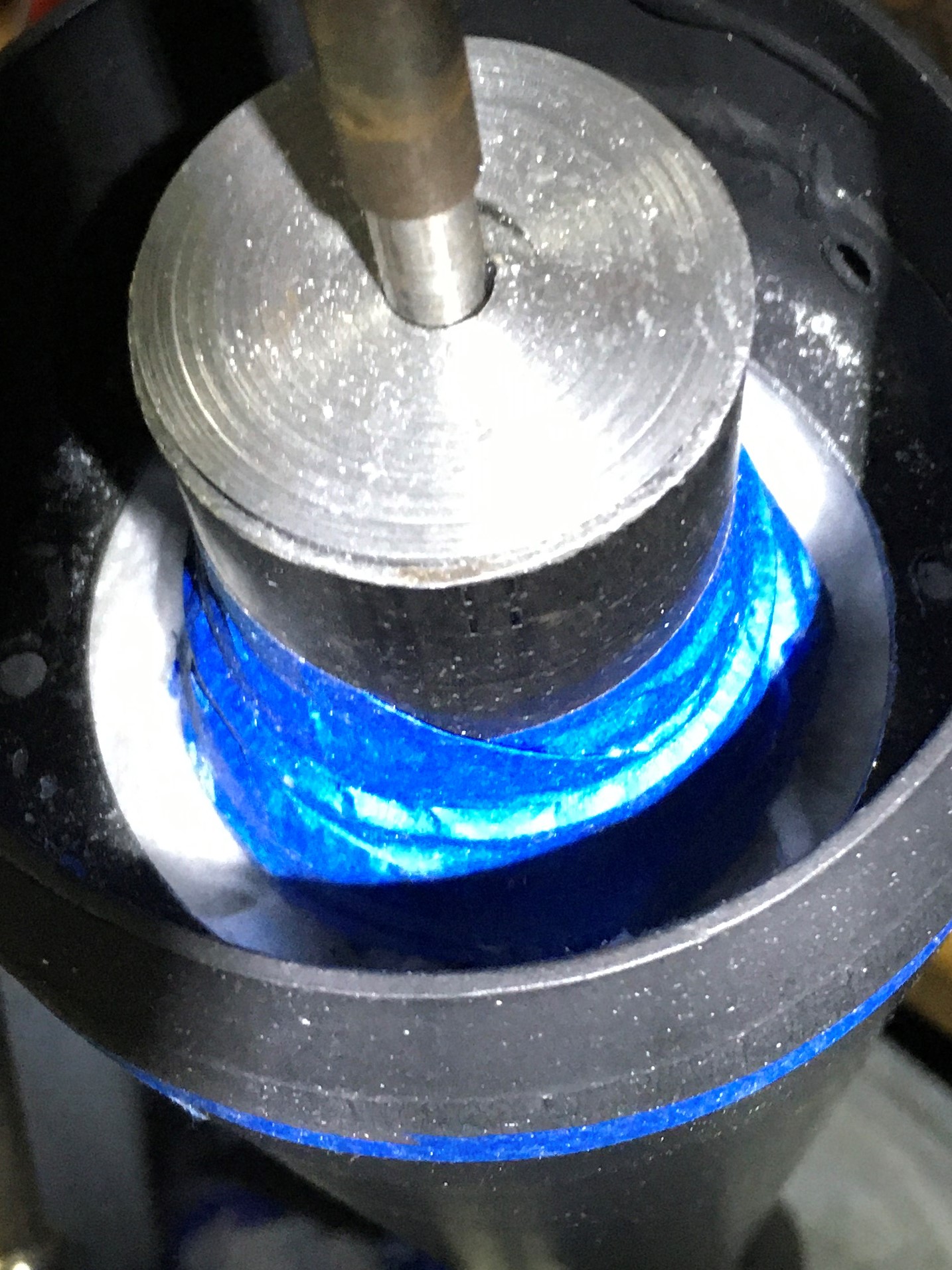 To provide clearance for back-filling with additional wool packing, dress down the original end cap remnant on the core.  File or grind it down until only about 1/8” remains.  Just enough for the new end cap to bear against and hold the core in place.  Red marks the area in question.  I haven’t started filing on this one yet.  Once done, it should only stick out from the core about 1/16” to 1/8” on the radius.