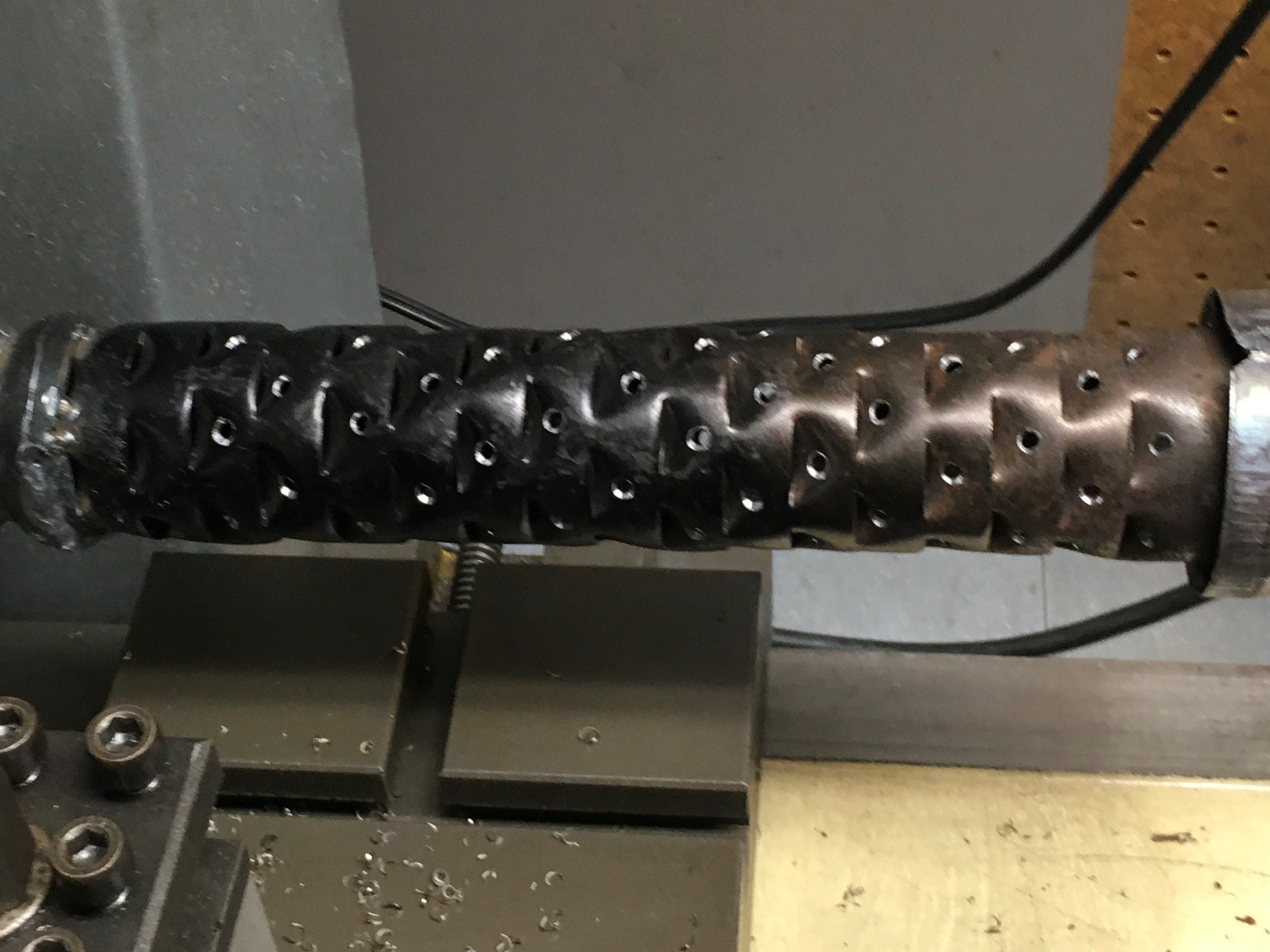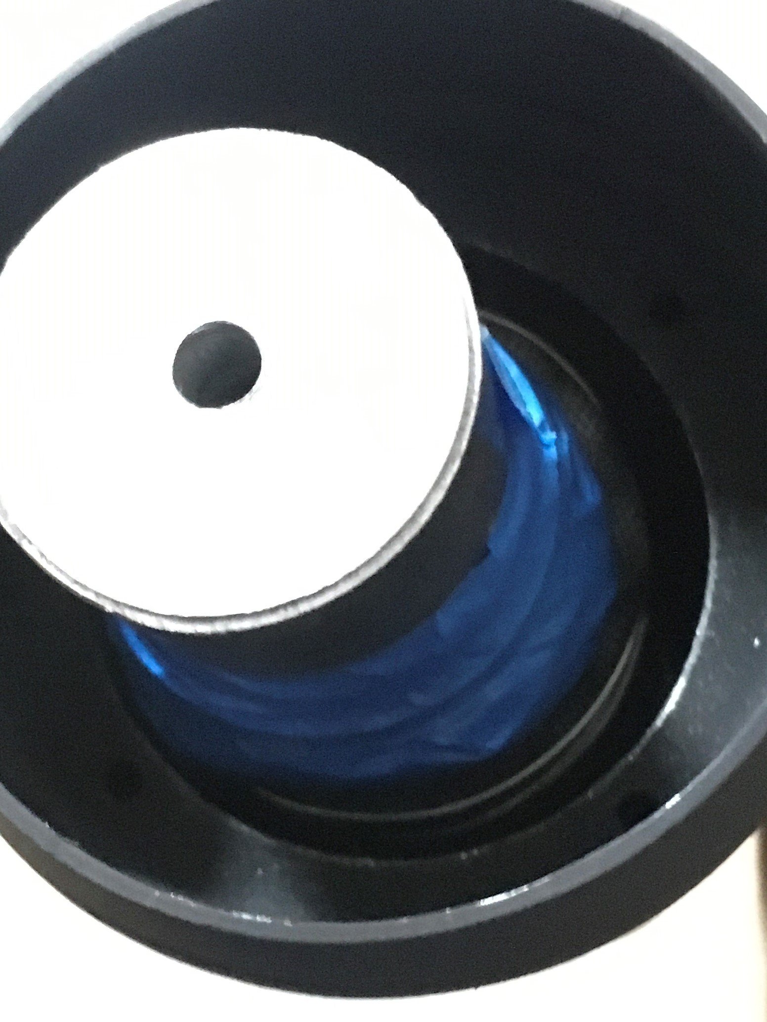 This shows why the Black Mac flows better than the chrome Mac.  The chrome Mac uses a core made from one long continuous tube with an inside diameter that’s about 1” (in way of the louvers).  The core for the Black Mac is two-piece.  The major portion of the core is about 1.75” OD and the inside diameter in way of the louvers is about 1.4”.  There’s a lot more room for the hot gas to flow through.