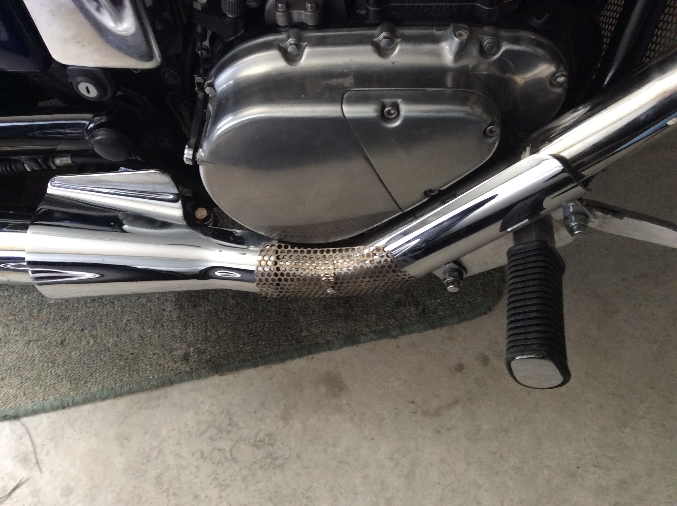 This puts my right heel on the bare part of the exhaust