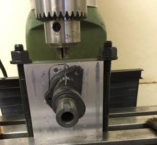Then I use a center drill to locate the correct spot for the hole and keep the small drill from wandering around.