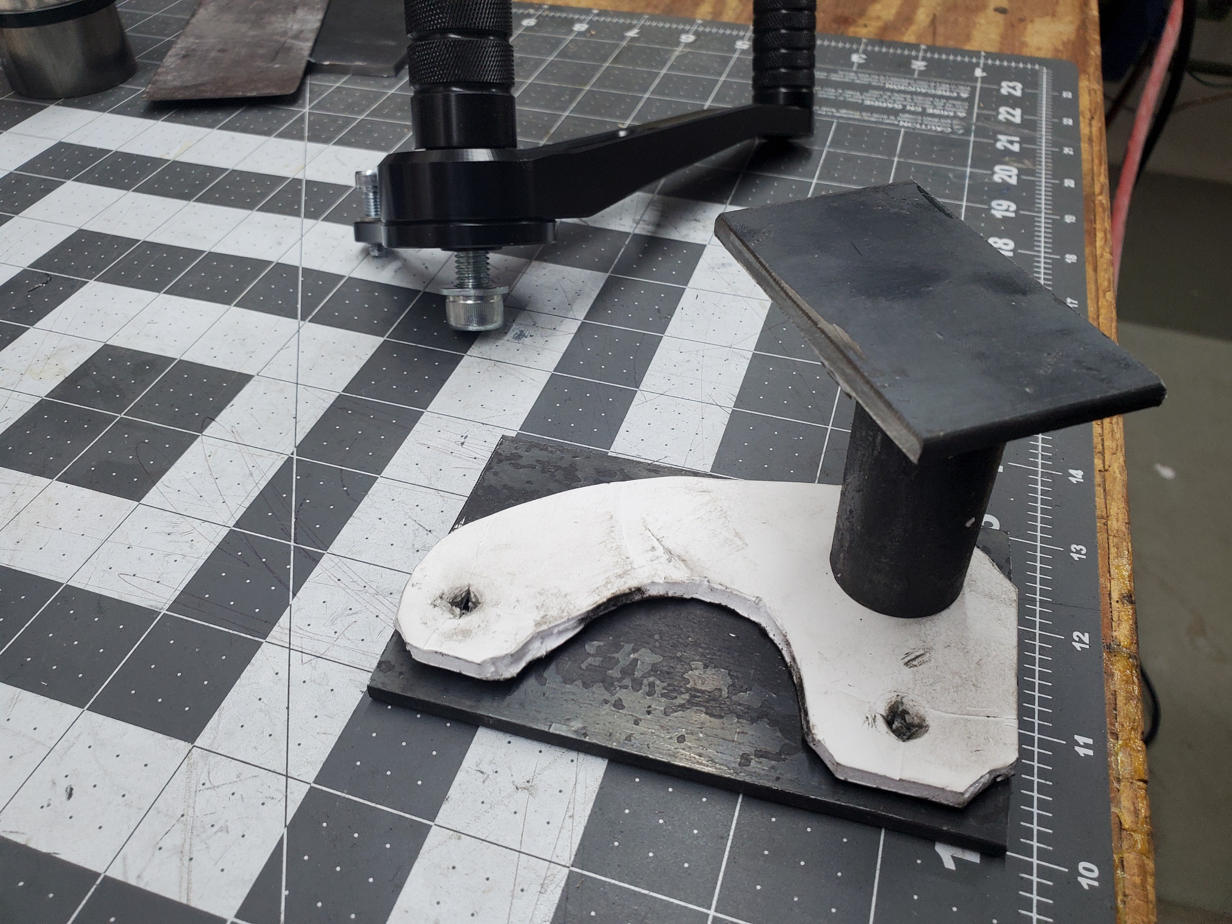 The rearset brackets are going to be tougher, and moving the controls, probably harder. Below is the template I made for the first step of the bracket. I have some tube steel, that I'll cut to about 2" long and will attach to the bracket. Then the mounting plate that the rearset will attach to. I'm thinking threaded rod connecting each side together for additional support like the ryca mount.