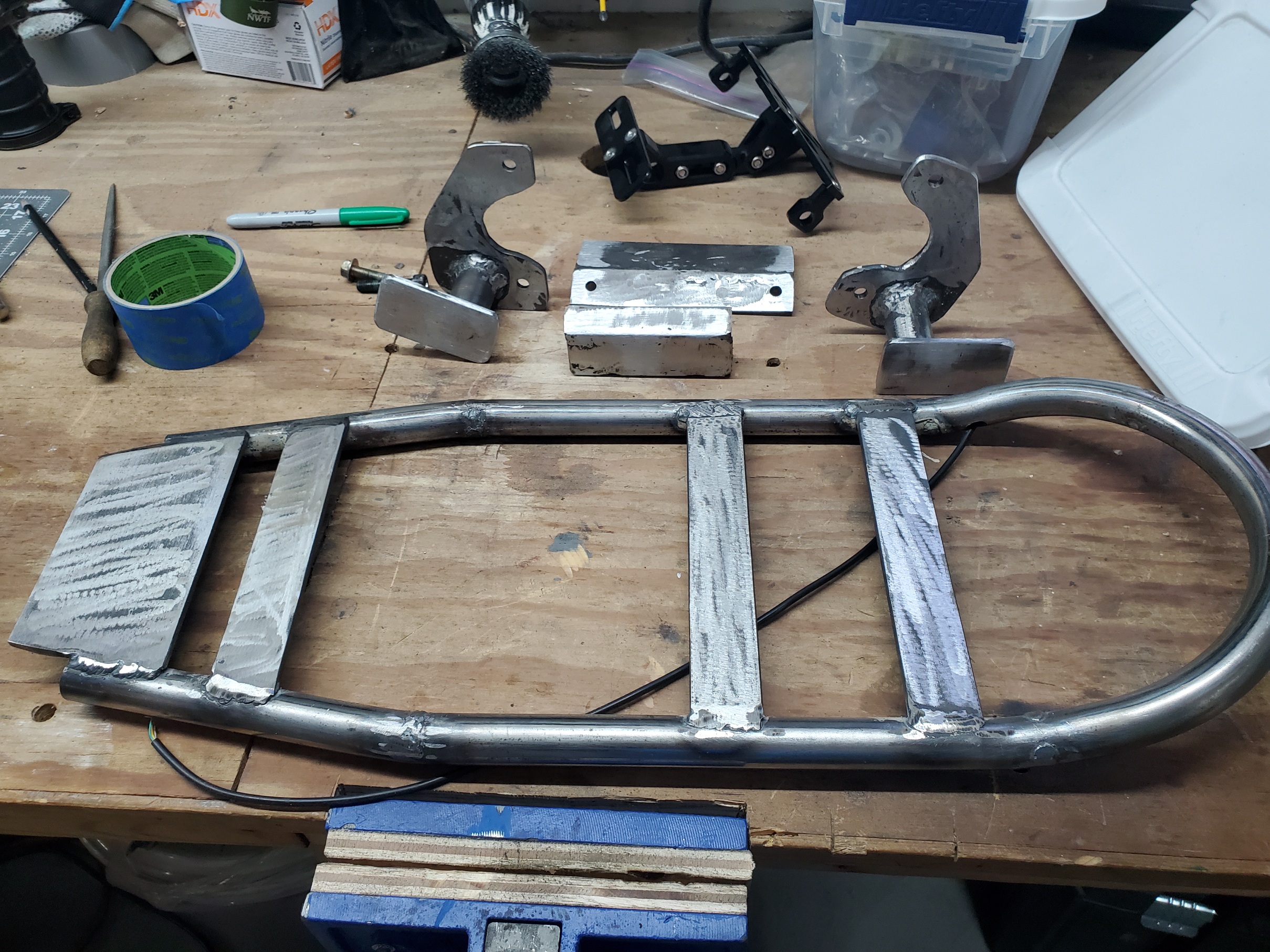 Are you designing this to be a bolt-on seat frame, or will you be welding this assembly to the bike’s frame.  If I was an inexperienced welder, my recommendation would be to design this as a bolt-on assembly.