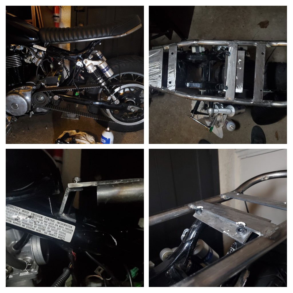 I've started on fabbing seat mounts and rearset brackets. The seat mounts should be fairly simple. I have them almost ready to install, and kind of copied ohiomoto's.