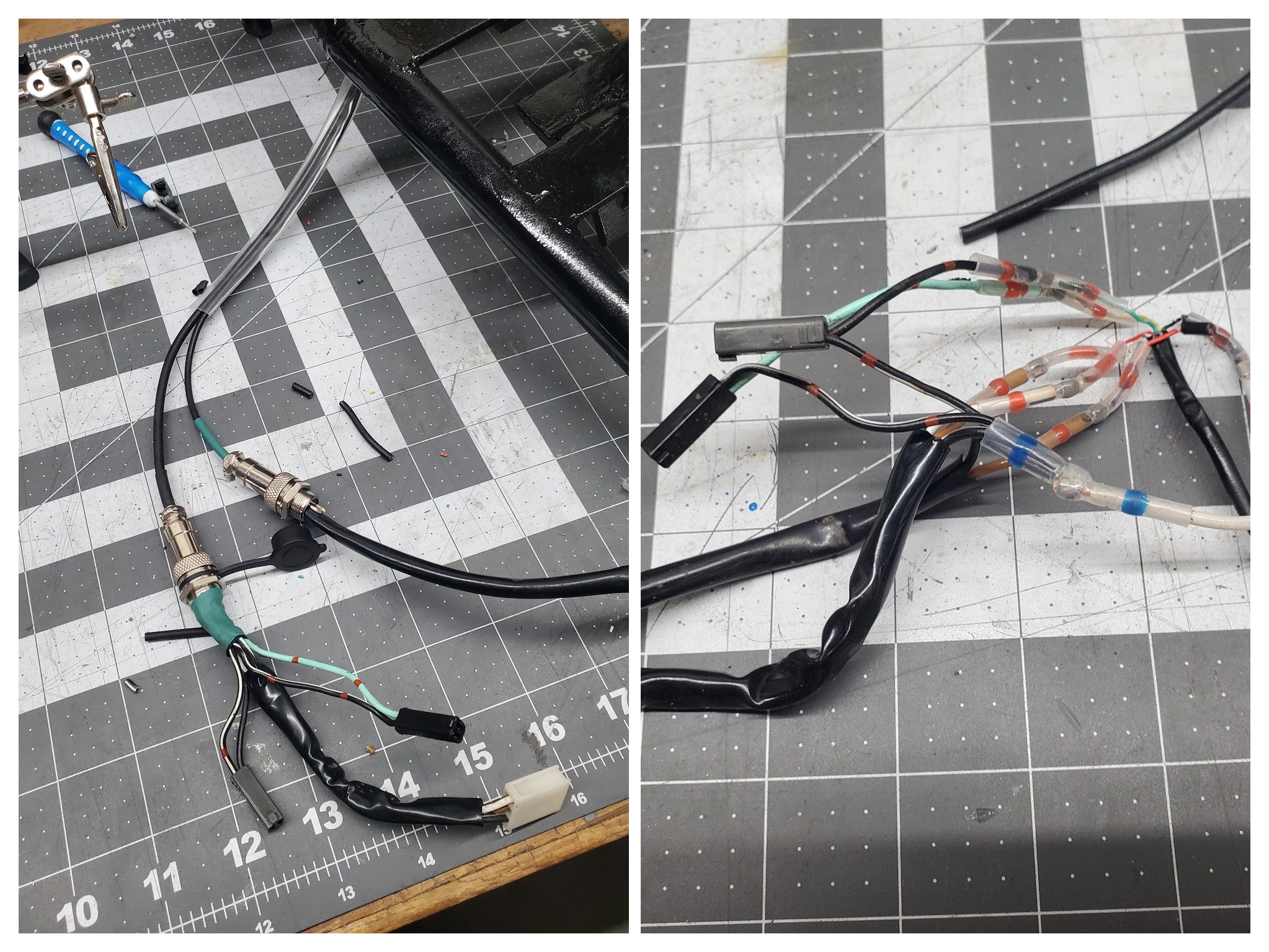 General wire cleanup - The wires for the tail light are 26 gauge or something tiny and the solderless connectors required too much heat for the tiny wire. Going back to traditional soldering and heat shrink. I have a few 4 pin aviator connectors I might use to keep the flimsy wires secure.