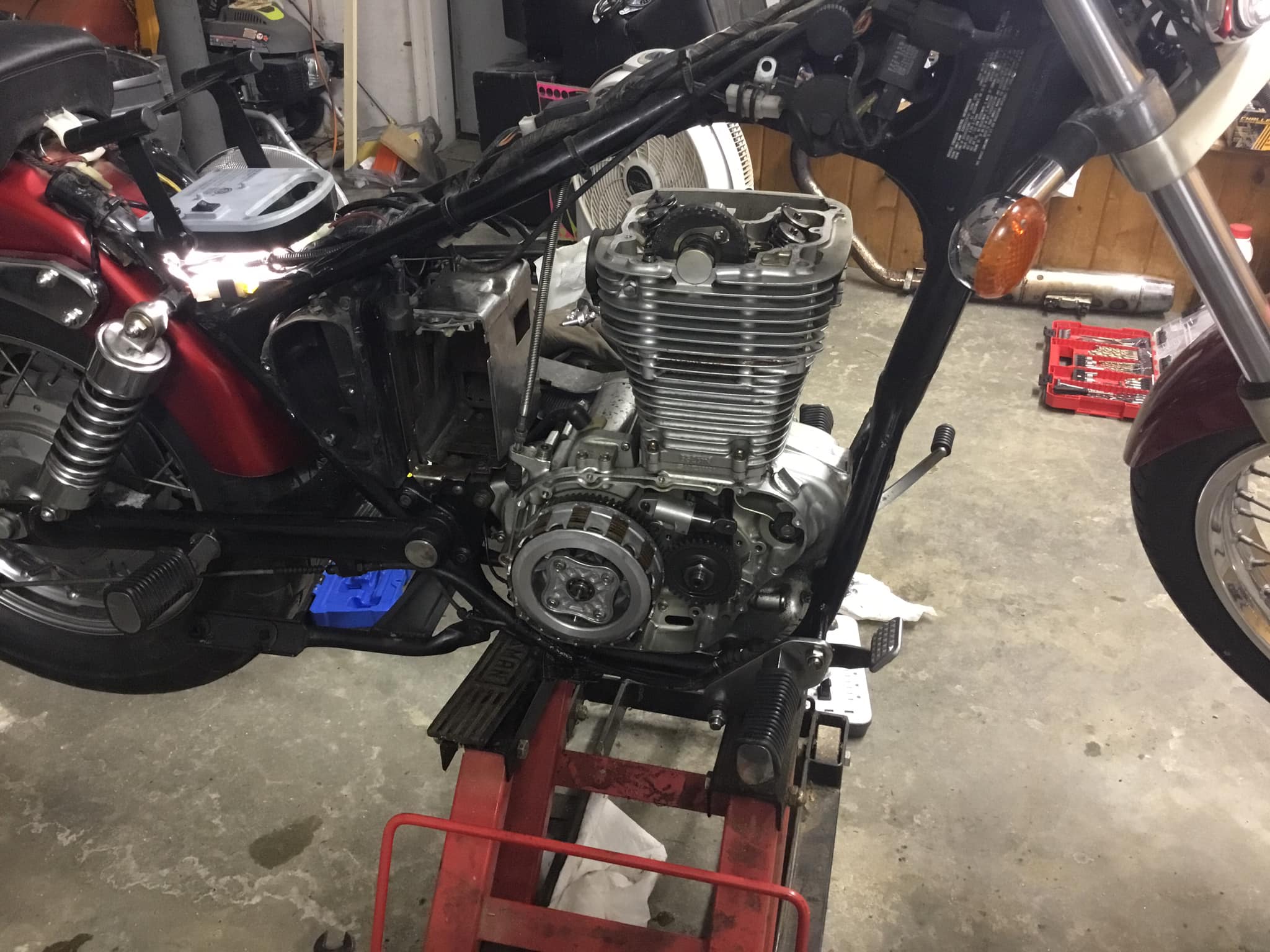 Count the number of teeth on the crank gear and the clutch basket before you put the side cover back on.......it would be nice to know if the 86 really did have a different primary ratio than the later bikes.