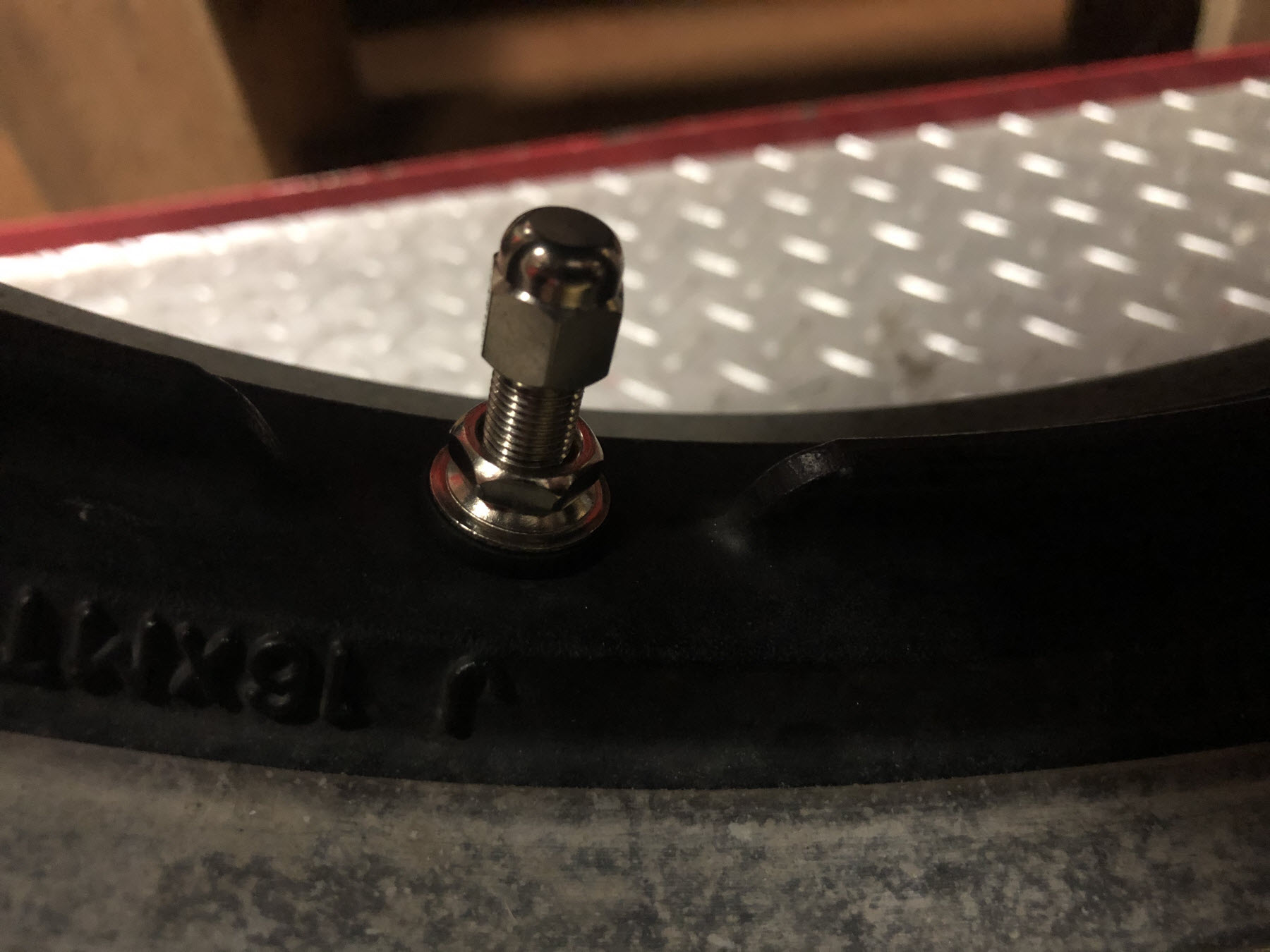 While I could make the front wheel valve stem hole larger and install a rubber valve stem - there is still the issue of not having the raised ribs on the rim.  I believe these raised ribs are what makes tubeless tires so hard to get off the rims.....and what helps keep the tire on the rim if the tire pressure gets low.