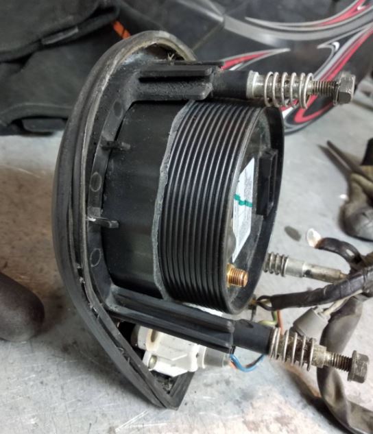 The plastic mounts of the mounting ring need to be trimmed a bit and then the retainer ring on the speedo needs to be cut down some.  Its pretty secure and ought to fit in the tank.  Problem is I dont have a stock tank to try it on.