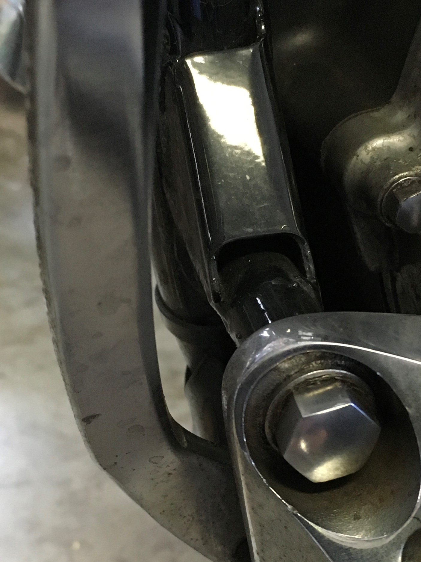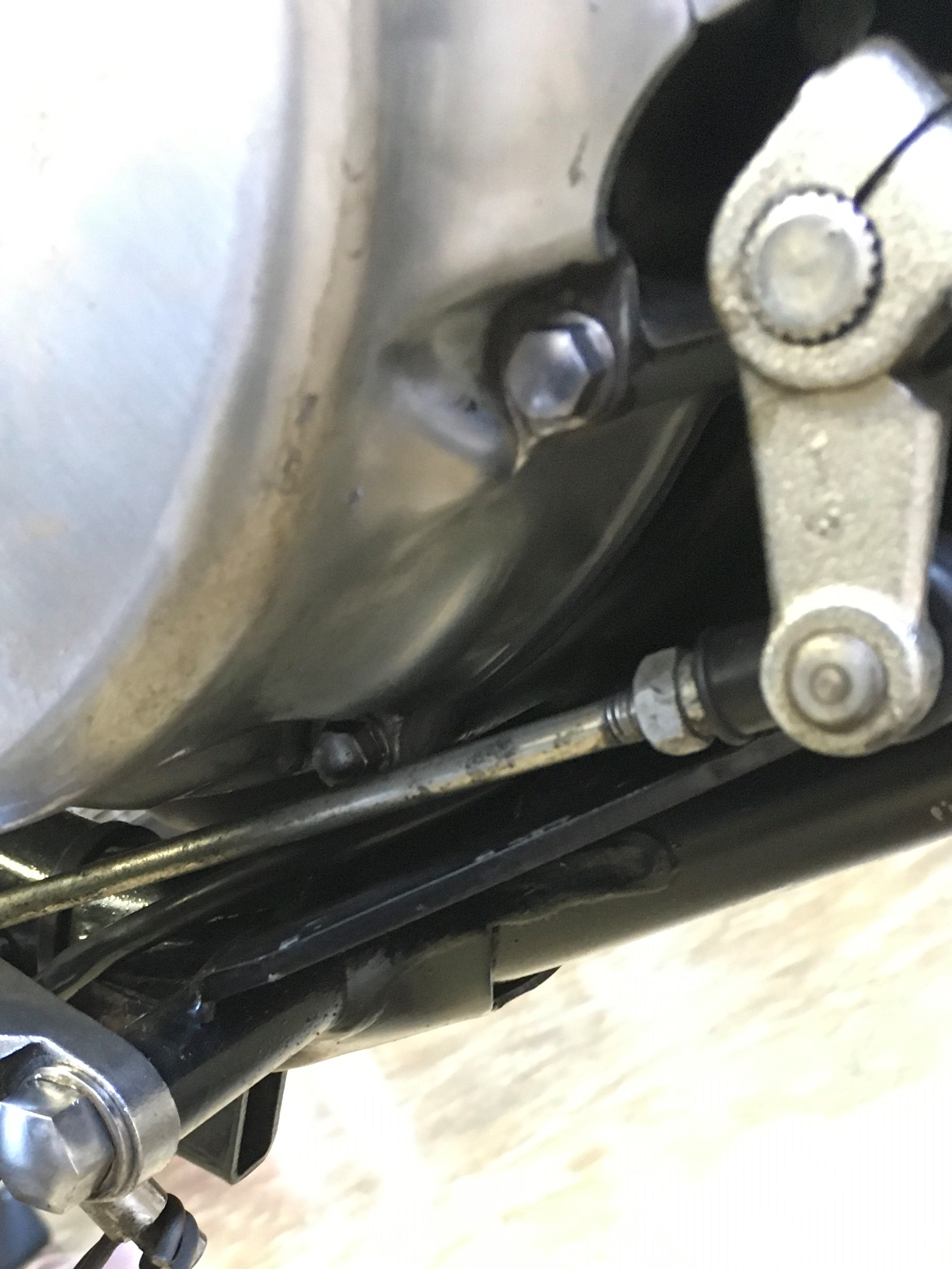 But you also are having trouble with downshifting from 2nd to 1st. You should make sure your linkage is adjusted properly and that the shift rod is straight, but there may be more to your problem than just linkage adjustment. When your linkage is adjusted correctly, the rod will remain well clear of the alternator cover when you upshift. Use tie down straps or some sort of stand to safely hold your bike upright. Then make sure the rod looks like this on all upshifts.