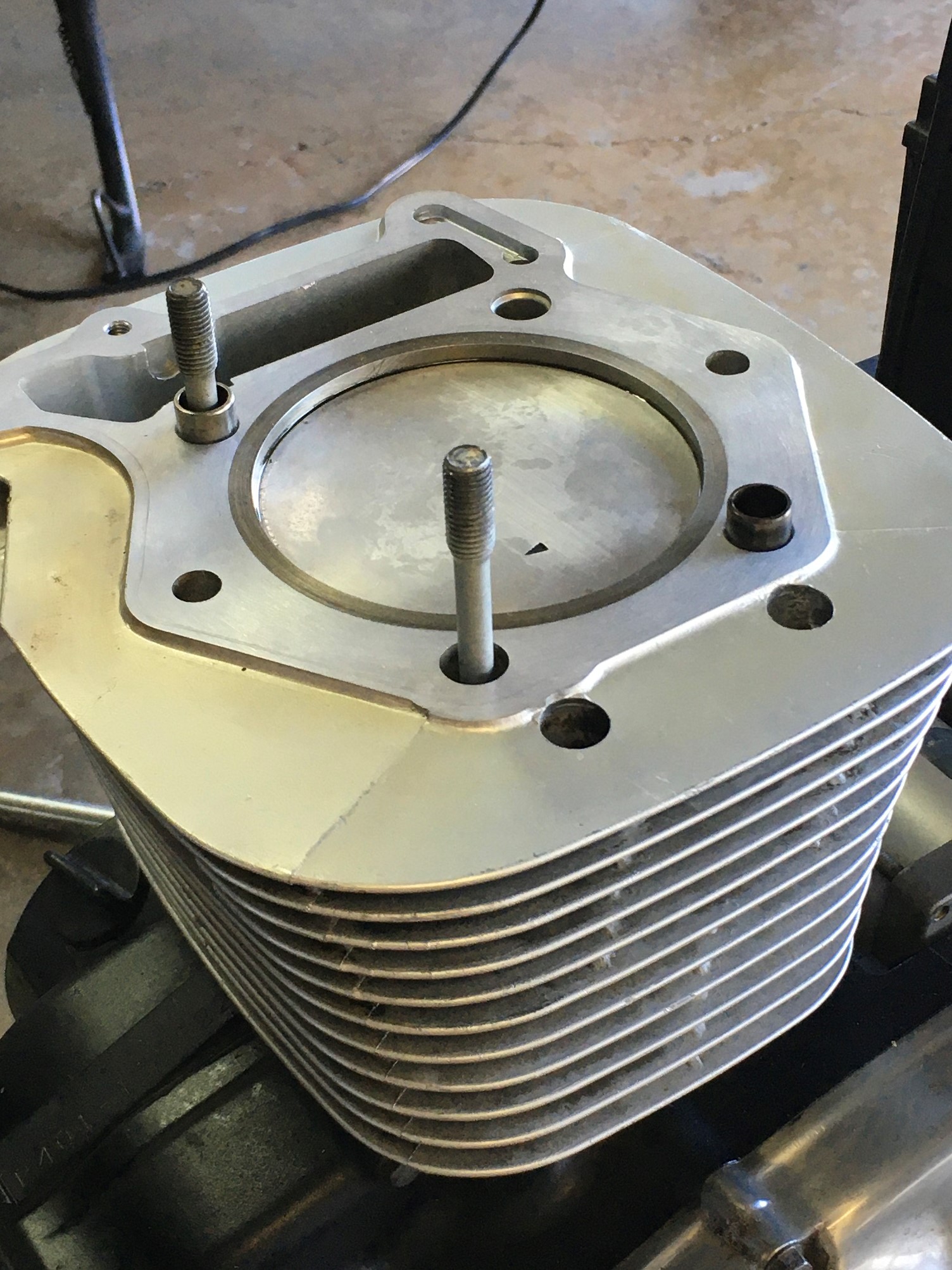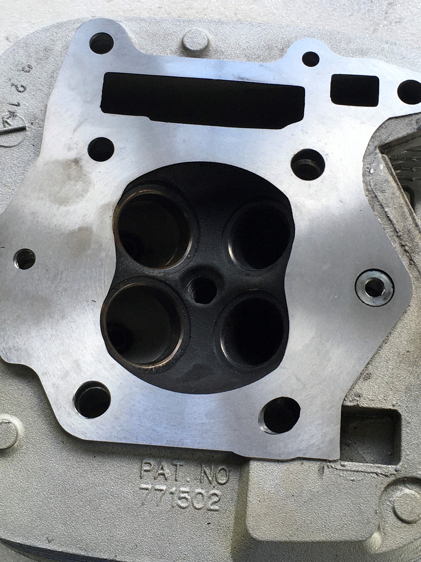 Only problem with the head was the 8mm stud under the exhaust port.  It was slightly bent.  The stud was frozen, so I suspect it got bent when someone tried to remove it.  I just lobbed it off, drilled & tapped for an 8mm stud identical to the intake stud.  That worked well.