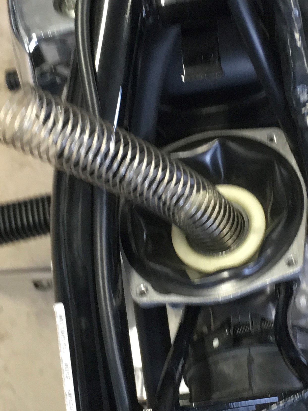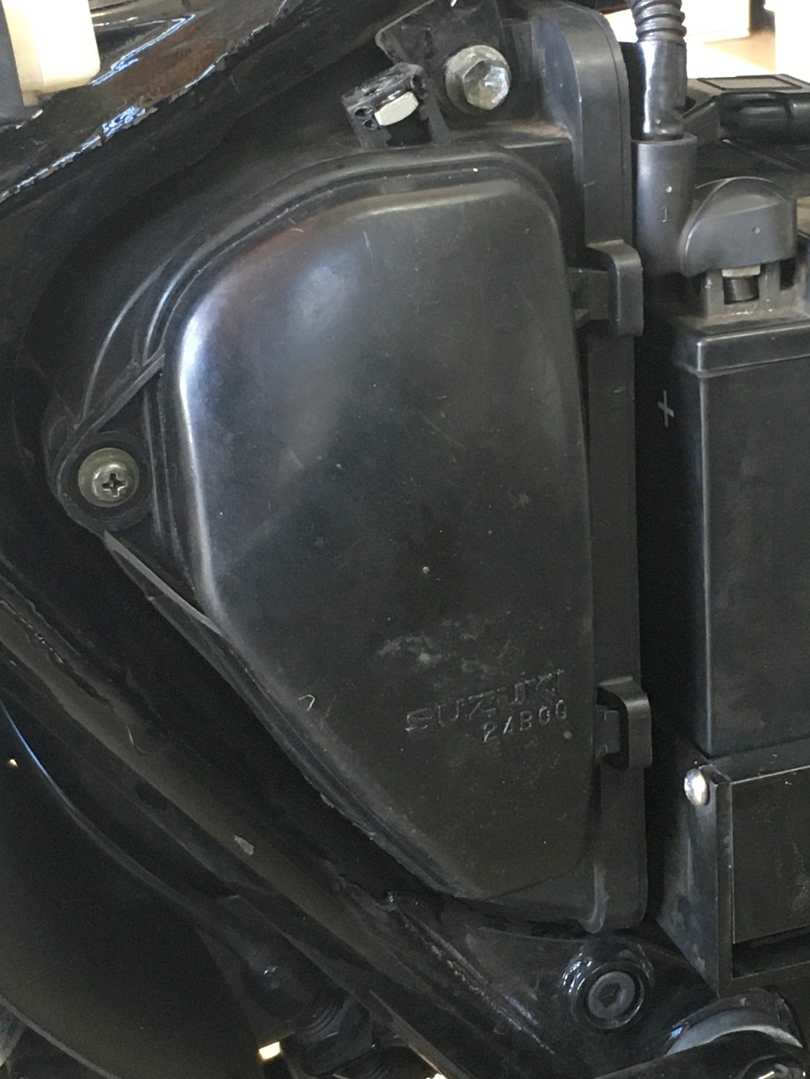 The LS650 airbox is very restrictive.  Air enters the airbox at the snorkel, located under the seat.  There’s a bunch of junk in the way.  The seat, wires, connector plugs, etc.