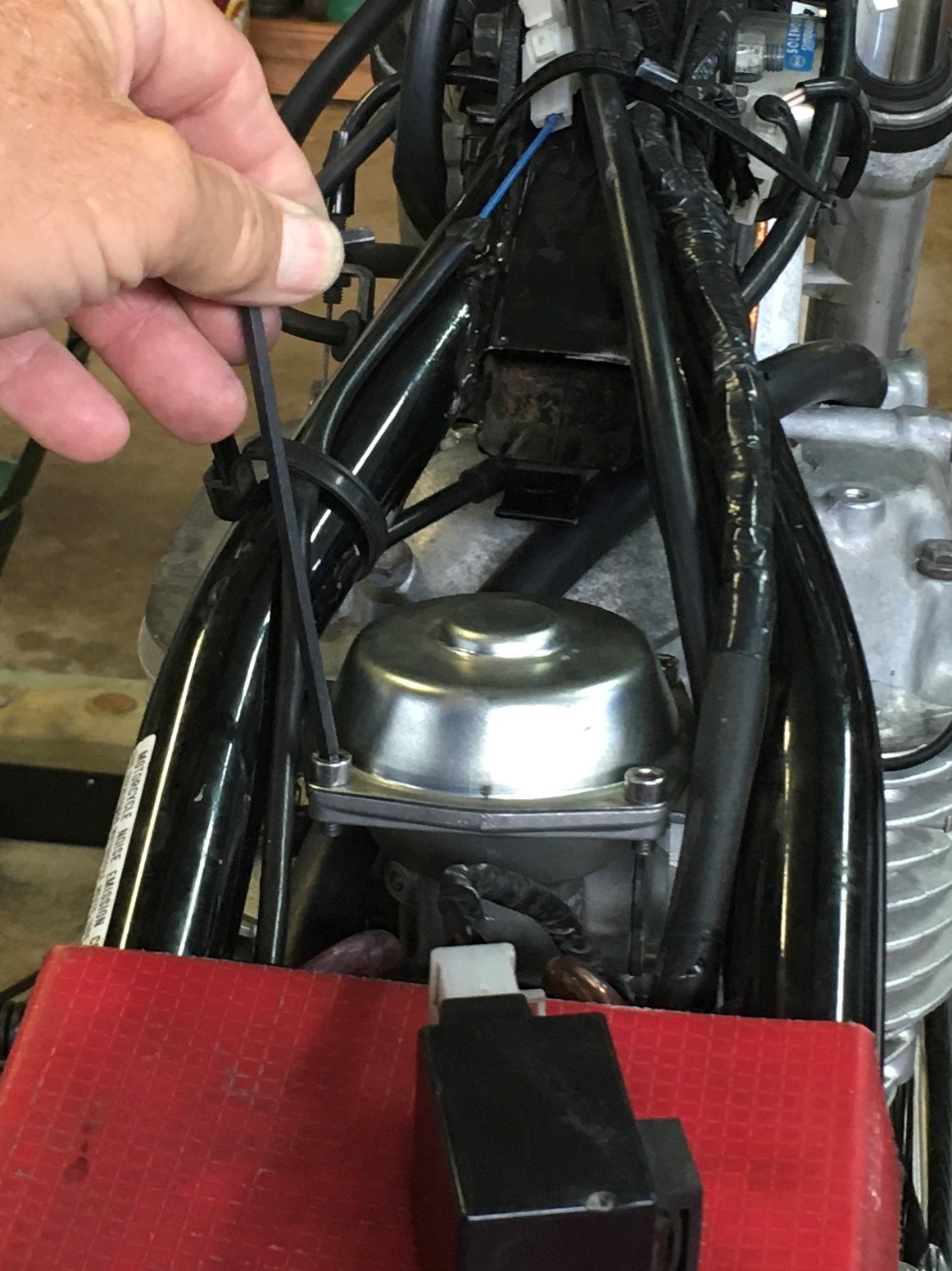 If you want to see if your bike will run better, just leave that plastic airbox cover off.  Put the tin back in place.  Give it a whirl, but be careful, it’s gonna run lean.  Don’t go wide open throttle (WOT) in any gear higher than 3rd.  With the cover removed, my 3rd gear acceleration time dropped by a little over 1-second (10.48 to 9.35).  Don’t run your bike like this for anything more than a quick test.  It will be too lean. You can hurt it if you get carried away.