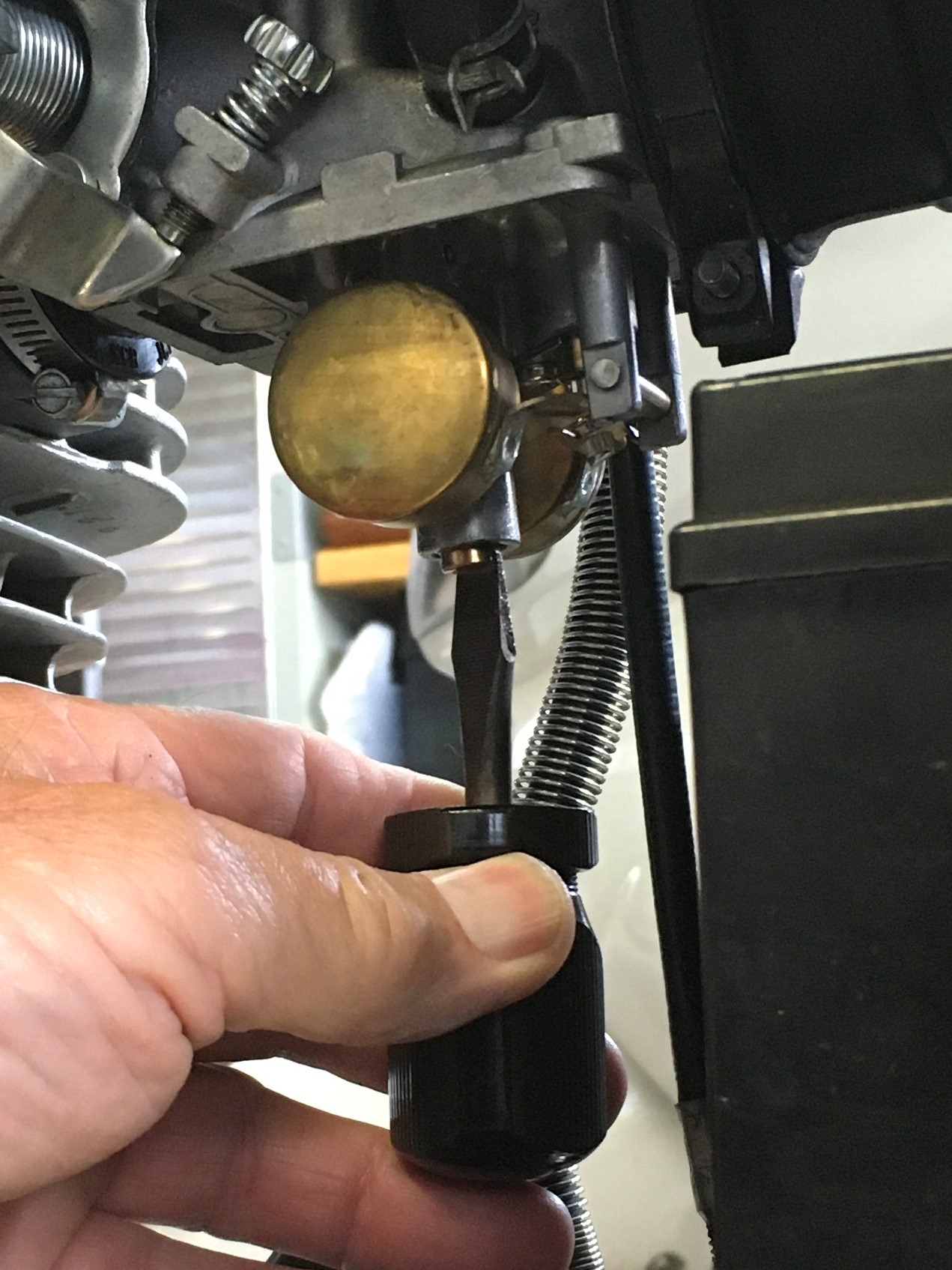 As I mentioned in Part 1, the brass plug that covered my idle mixture screw has already been removed.  I left the screw at 2 turns, which is exactly where I found it when I removed the plug 3 years ago.  If you haven’t already removed the plug you might want to do that.