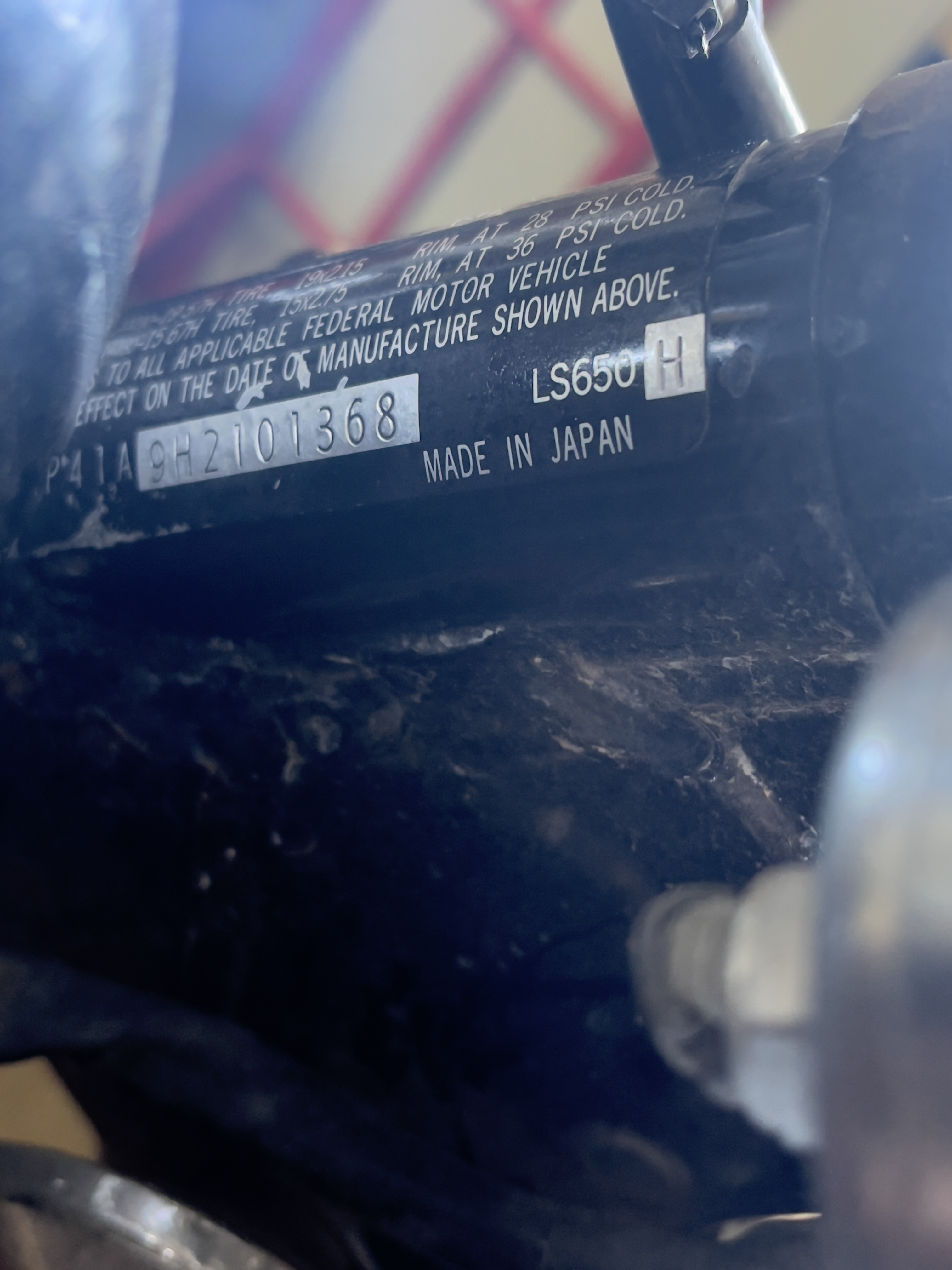 A very shortened version:JS1NP41A9H2101368 digit-description (code) 1-Japan (J), 2-Suzuki (S), 3-Motorcycle (1 or A), 4-Single cylinder sport/street (N), 5-600-699cc (P), 6-4 stroke single (4), 7-model version first version uses 1, 8-model version first version uses 1,2,3,4,5,6,7,8,9,A? 10th version? 9-accuracy check digit, verifying the previous VIN numbers ? 10-Year Code 86(G), 87(H), 88(J), 89(K), 90(L), 91(M), 92(N), 93(P), 94(R), 95(S), 96(T), 97(V), 98(W), 99(X), 00(Y), 01(K1), 02(K2), 03(K3), 04(K4), 05(K5), 06(K6), 07(K7), 08(K8 ), 09(K9), 10(A), 11(B), 12(C), 13(D), 14(E), 15(F) 11-Factory Code 2 12 thru 17-Serial Number