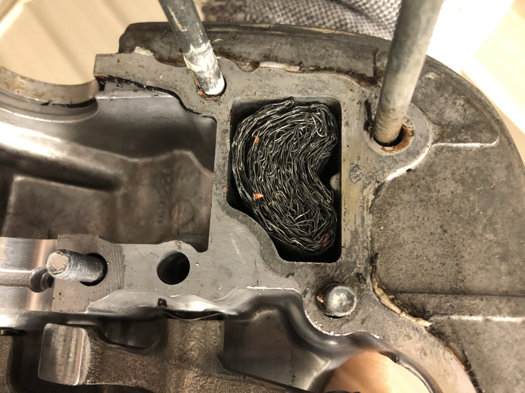 The steel wool evidently as an attempt to fix the issue without removing the head cover again.