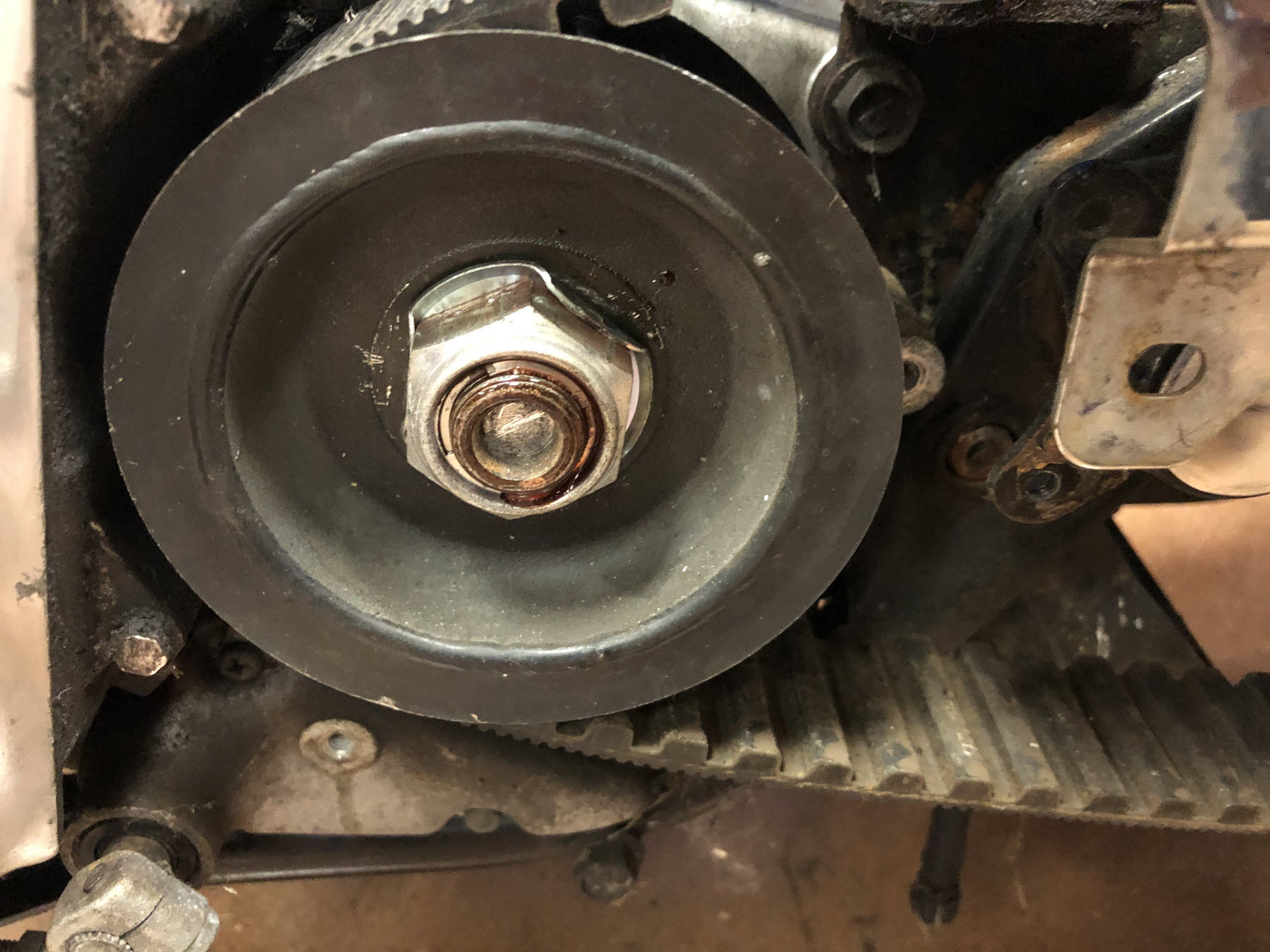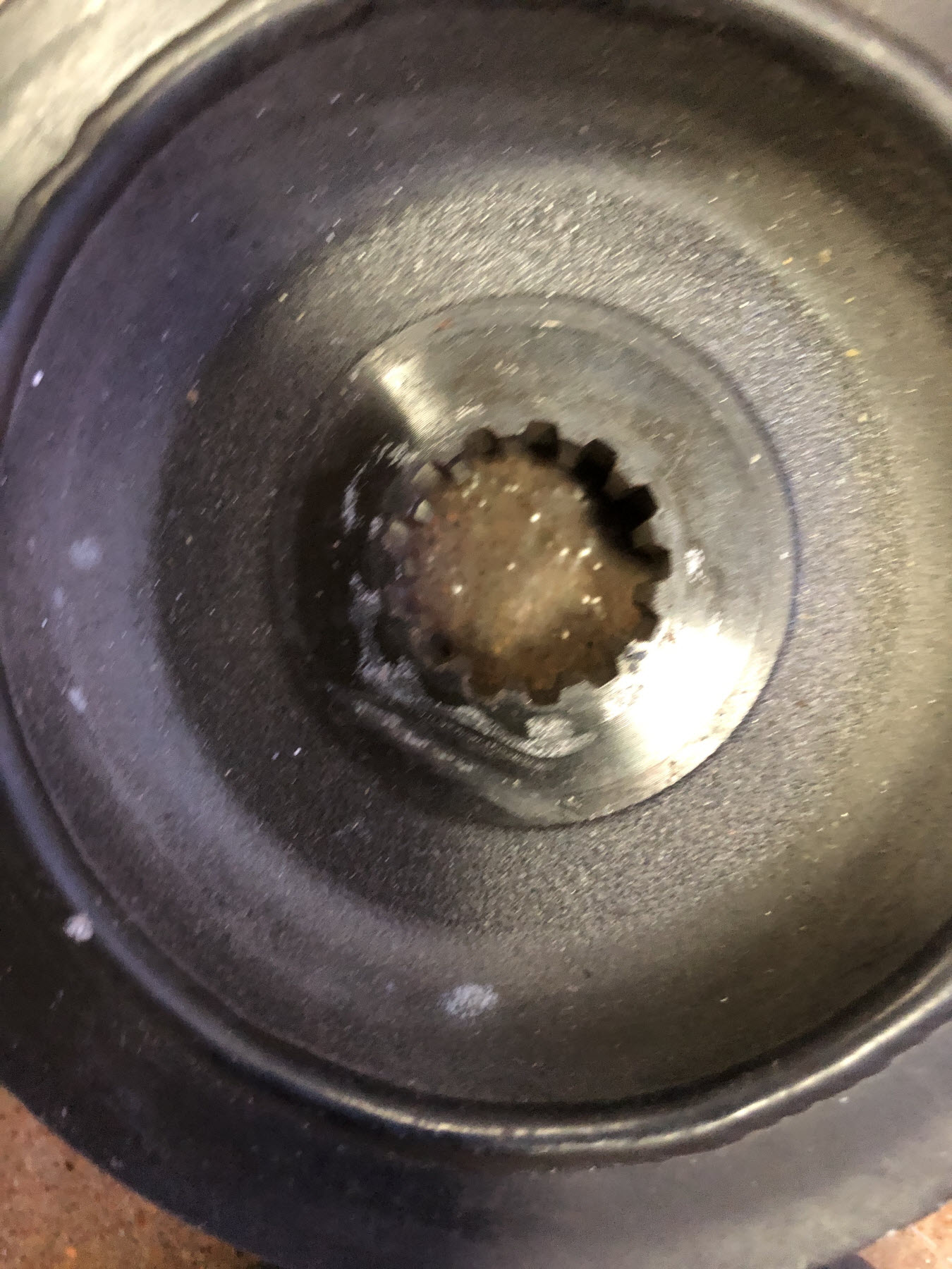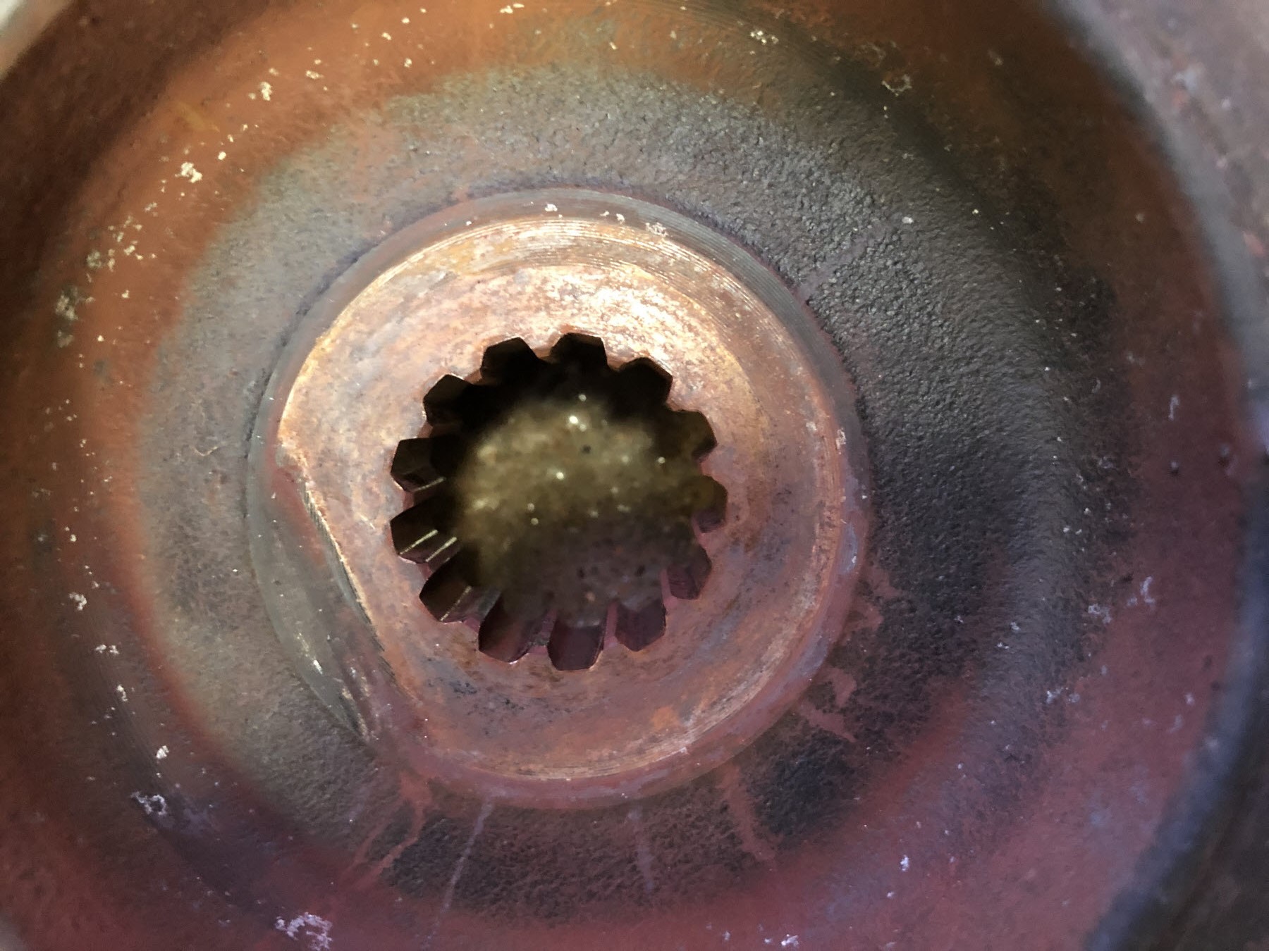 I discovered the pulley was loose. The pulley splines were damaged, and the shaft has a little wear as well.