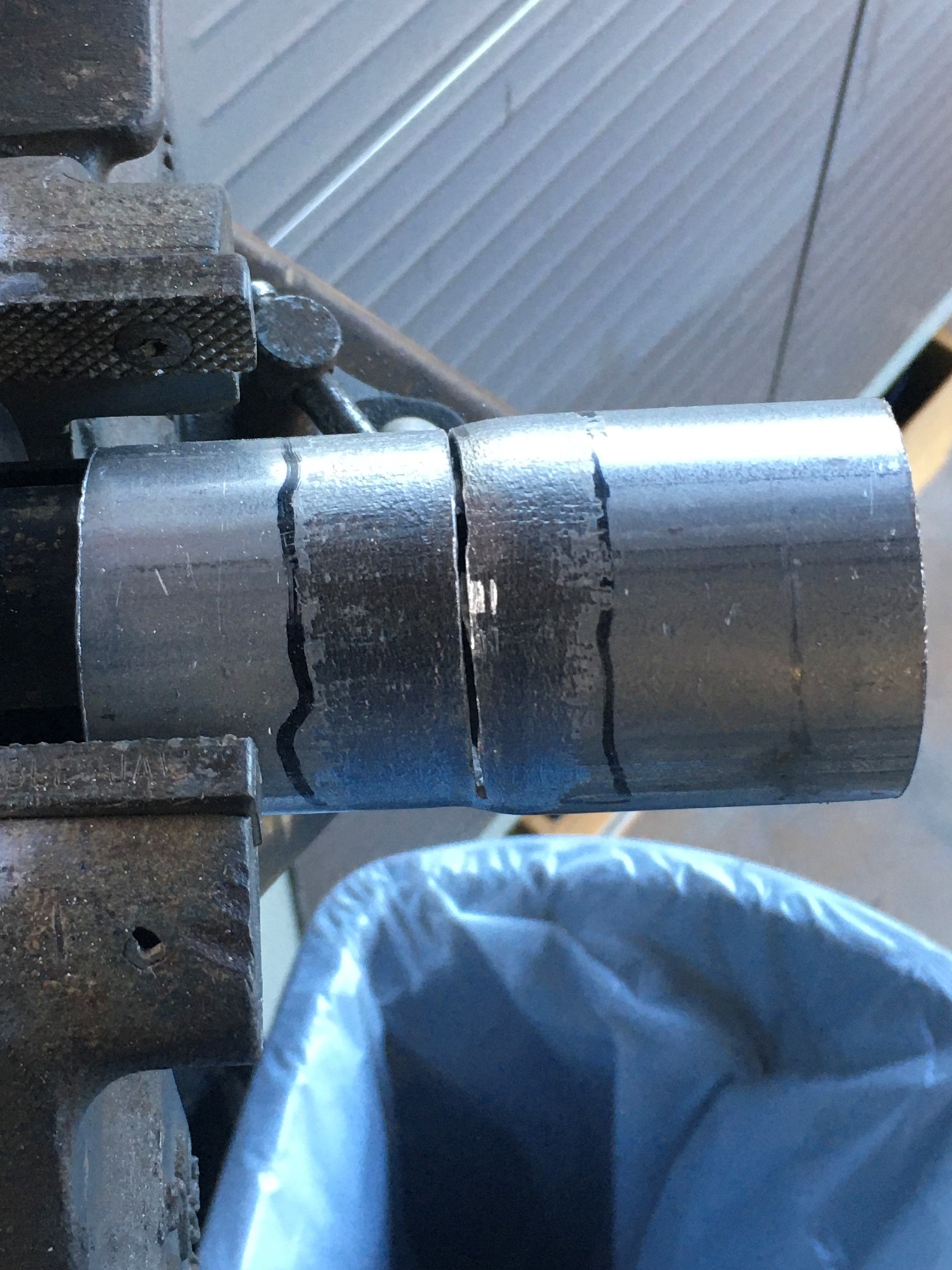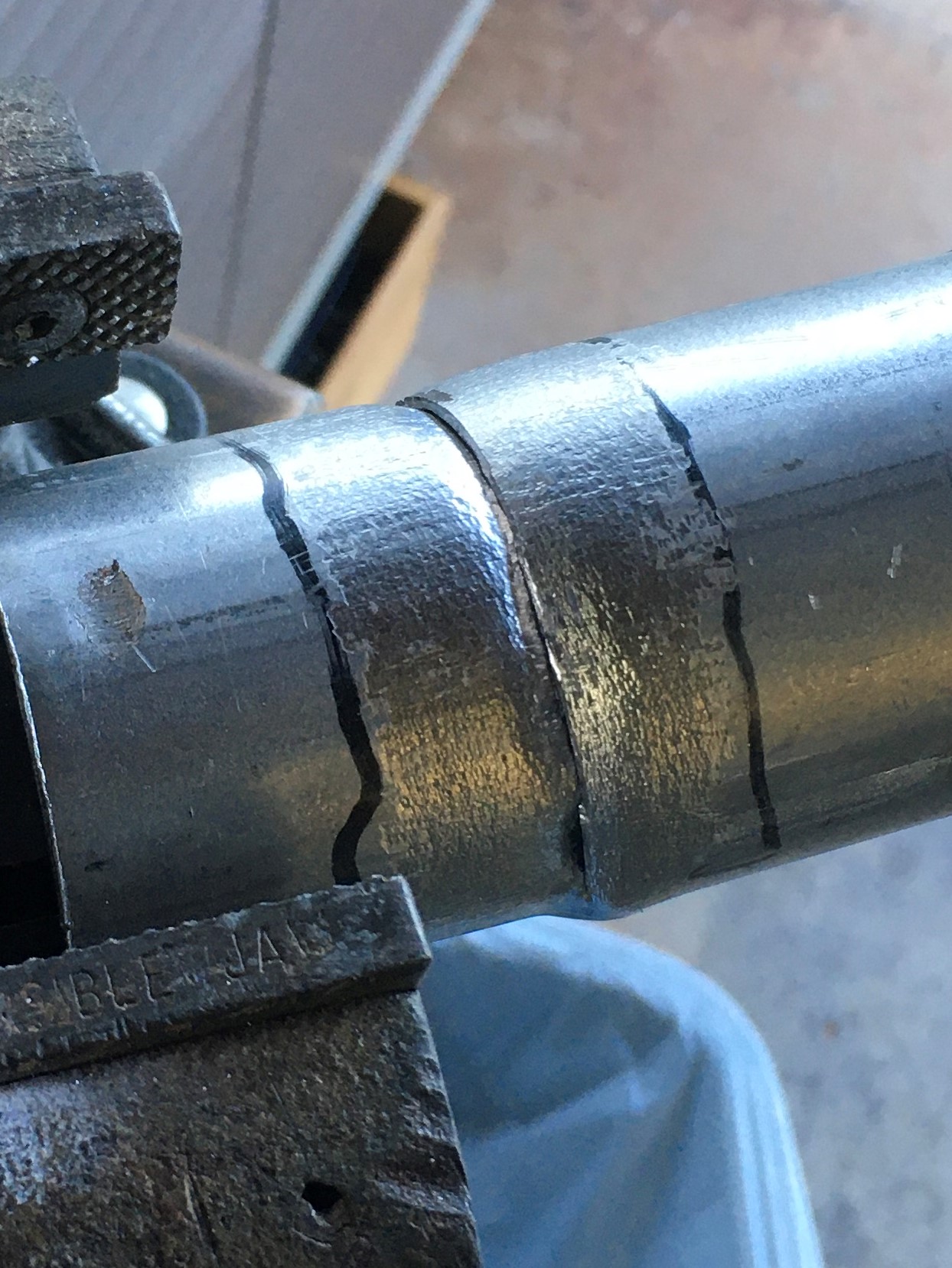Then slice through the adapter with a hack saw.  A muffler expander works great for holding the adapter.  Only cut half-way through.