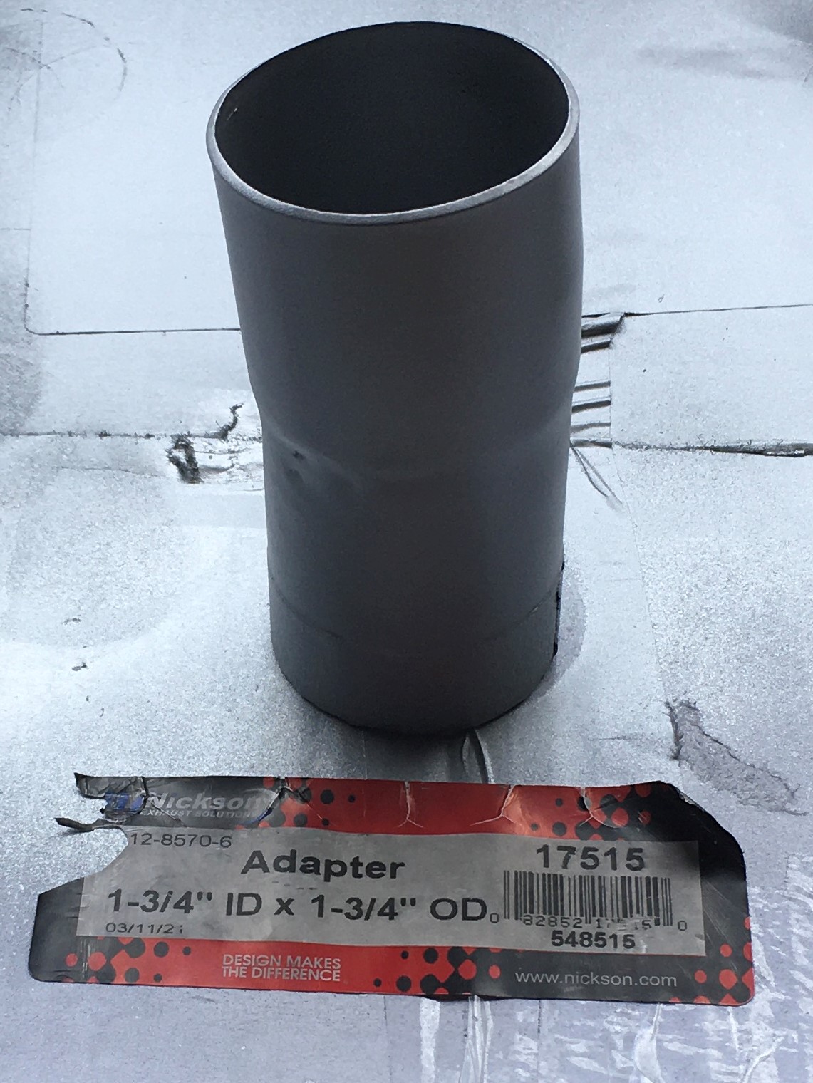 To keep this mod simple and inexpensive, we are going to install the Harley muffler on the stock Suzuki head pipe.  That will require an adapter.  I used a Nickson 1.75 ID x 1.75 OD, part number 17515.  They cost a little over $3 bucks.