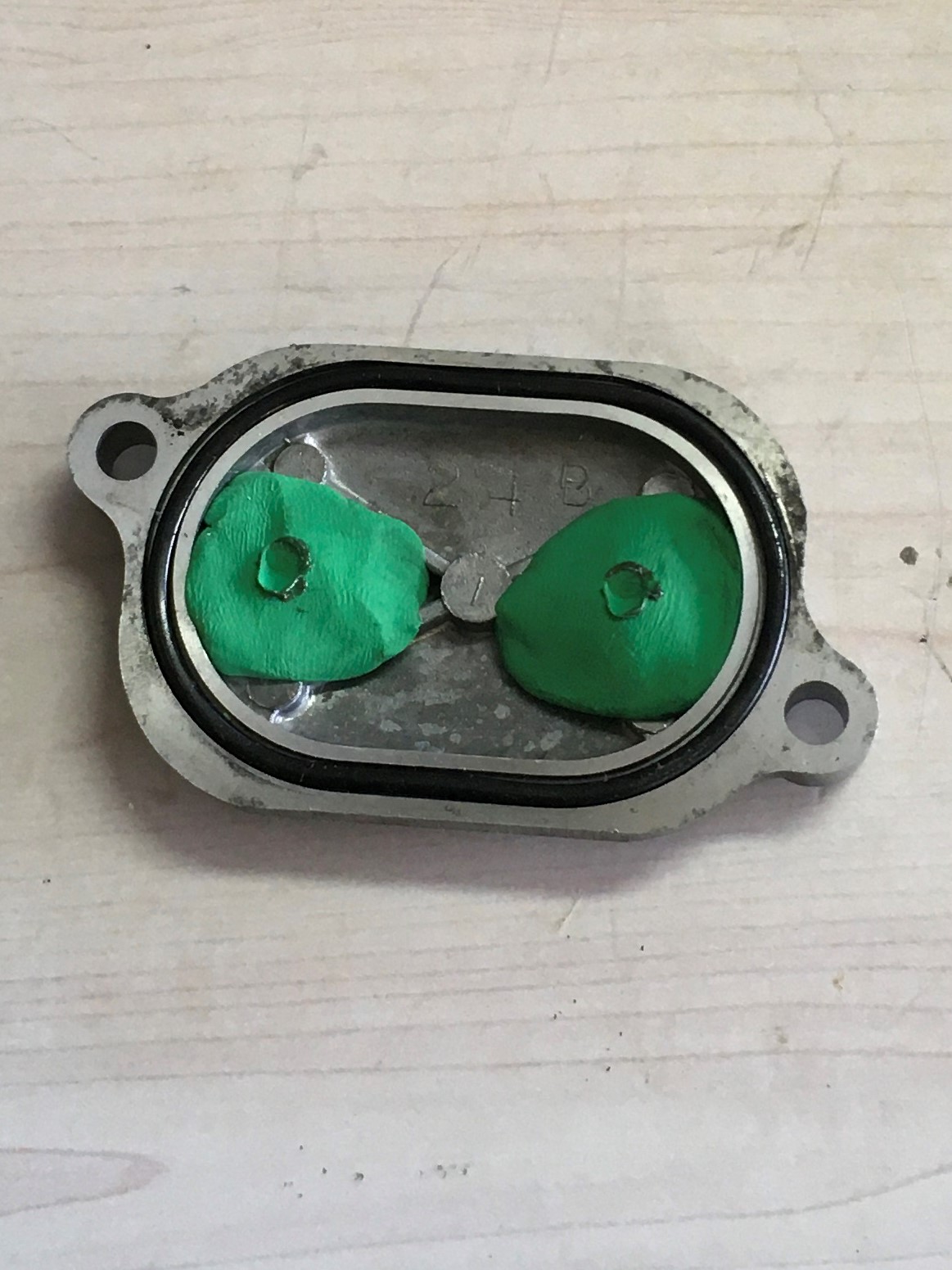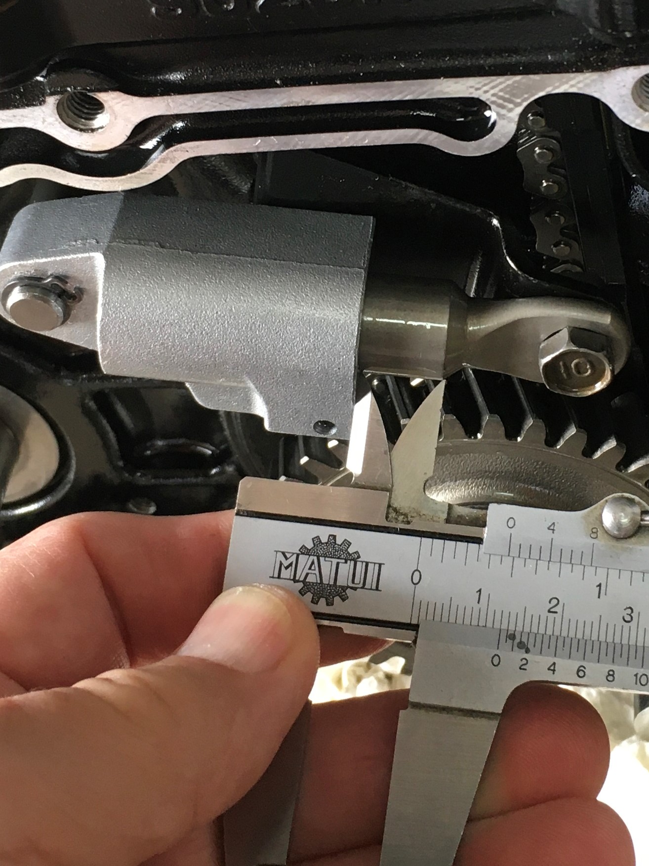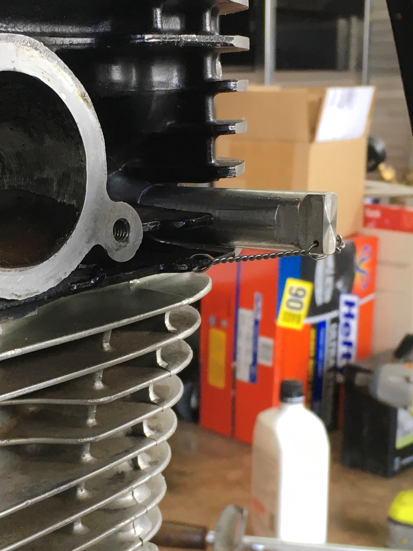 Set valve clearance to .005” and fill the crankcase with oil. I must confess that I switched oil. It was getting a bit too expensive. I’m into this thing every week or two and I usually don’t re-use oil. The Rotella T4 costs half of what Castrol V-Twin oil costs, and probably only one-fourth of what Mobile 1 V-Twin oil costs. The Rotella will do for now.