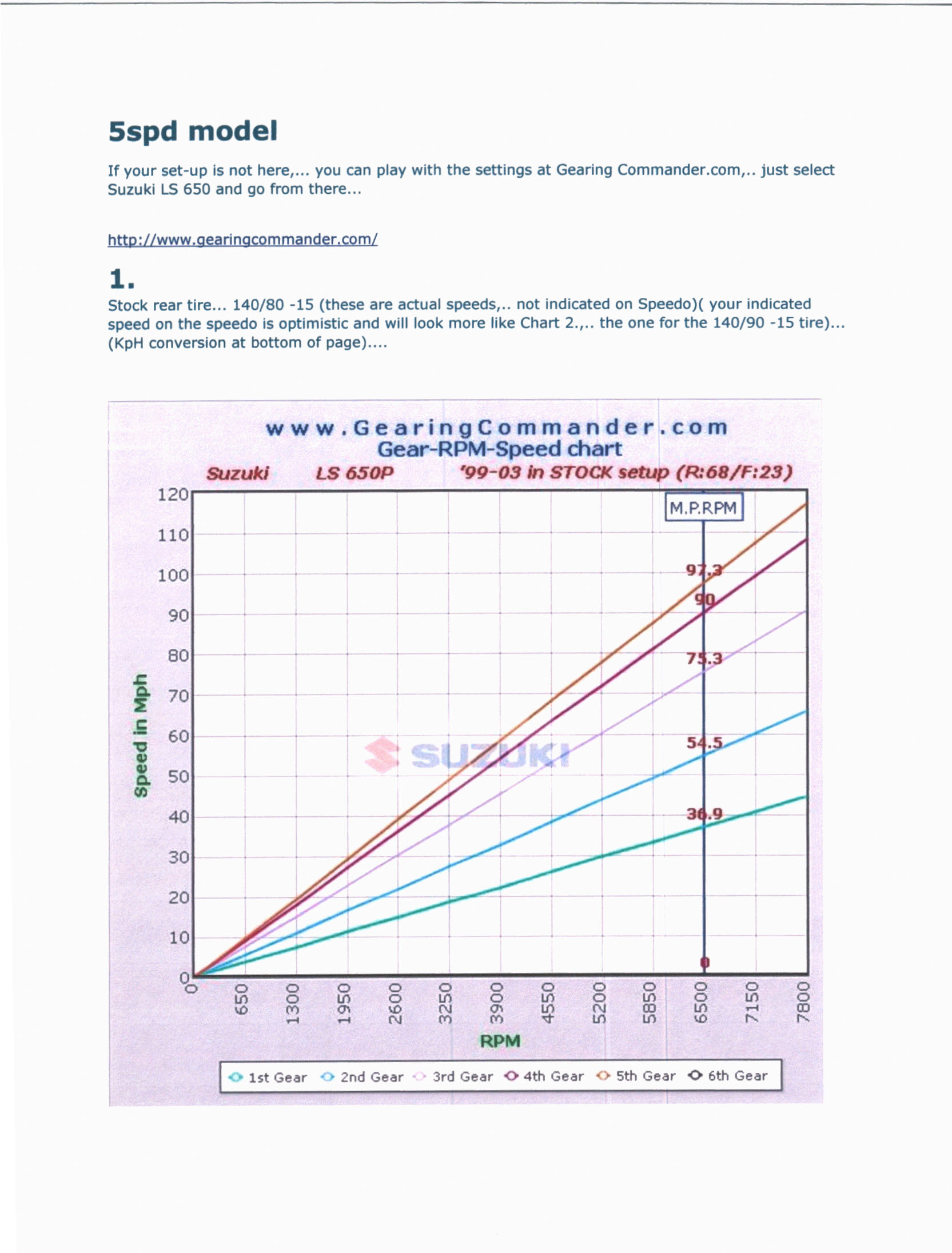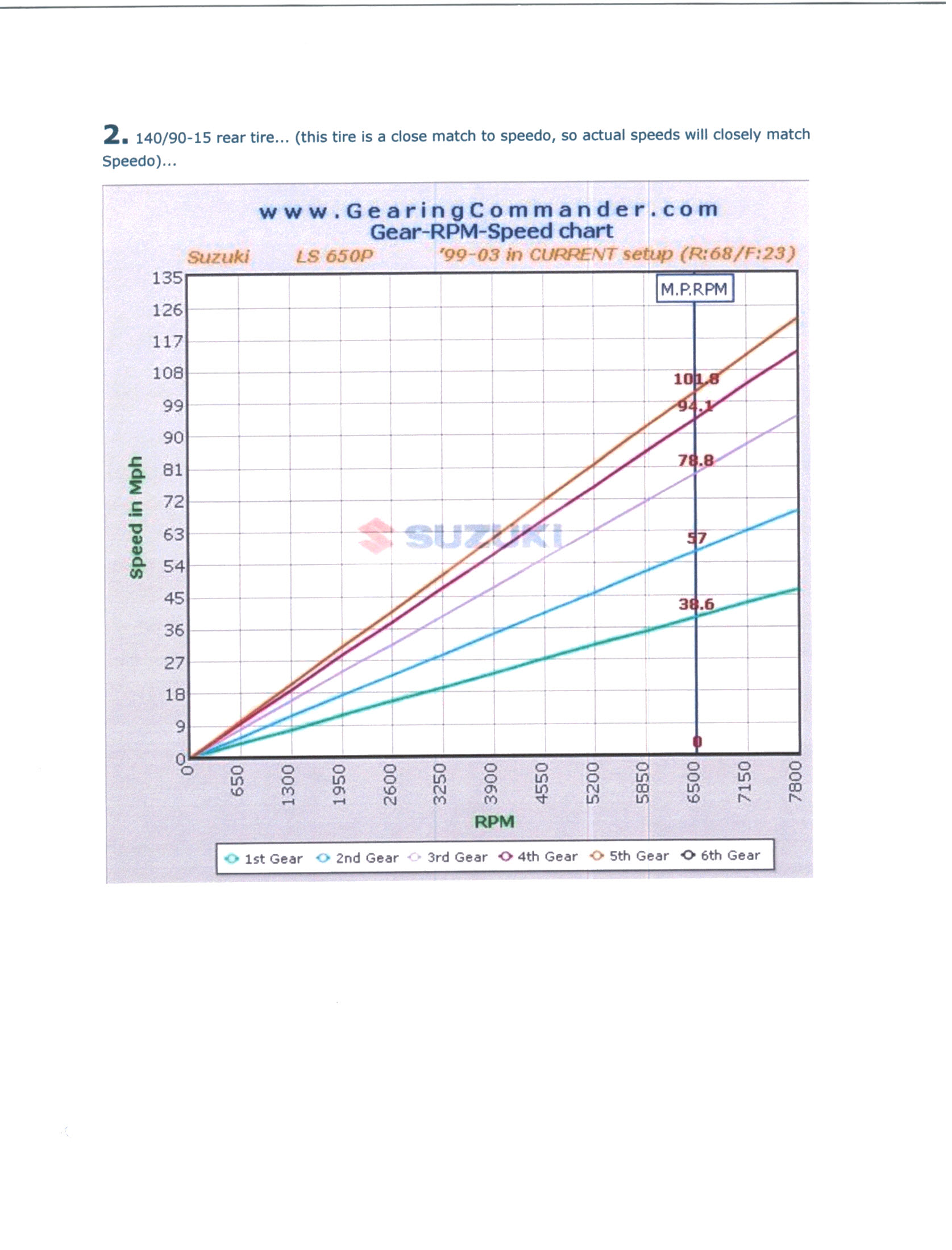 What kind of speed should I be looking at at the top of his gear? On a 2000 Suzuki Savage 650? Also RPM range. As my bike does not have a tachometer and I’m new to this motorcycle. It just sounds like I am screaming doing 60 miles an hour….Just returned the motorcycle stock. It sounds like I’m doing 15,000 RPMs and 50 year LOL at 70