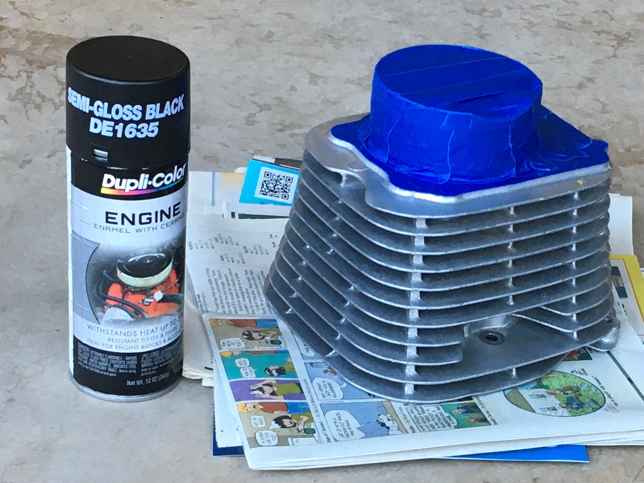 The jug was an eBay beater.  It was ugly.  I left it ugly for the pop-top build.  Since the 97mm flat-top would probably be my final build, I decided to slap on a coat of paint.  This Dupli-color engine enamel with “ceramic” really goes on nice.  Have any of you used this stuff?