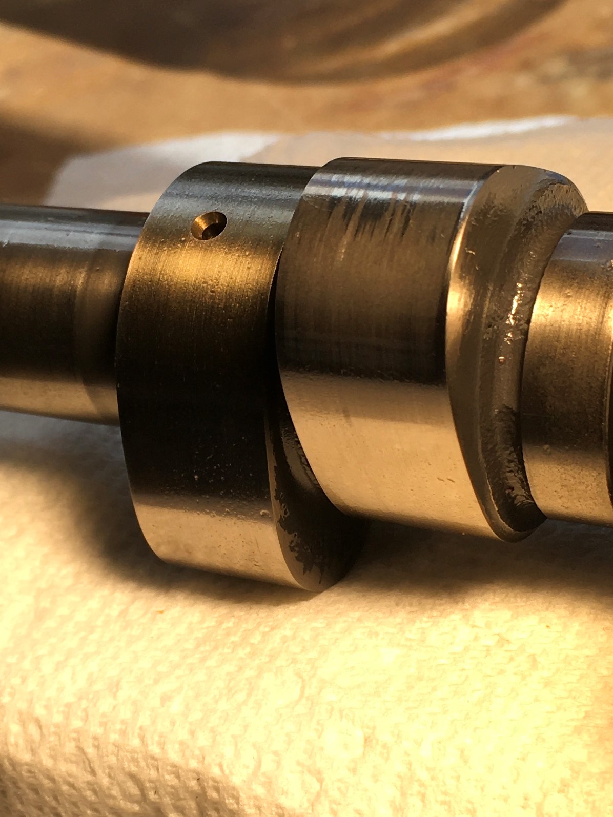 Check out the 340b after 7272 miles.  They were hard miles, but I really would like to get a little more service life out of my camshafts.  Again, same oil.  I recall Dave had a failure that looked very similar.  I’m not likin these welded cams.