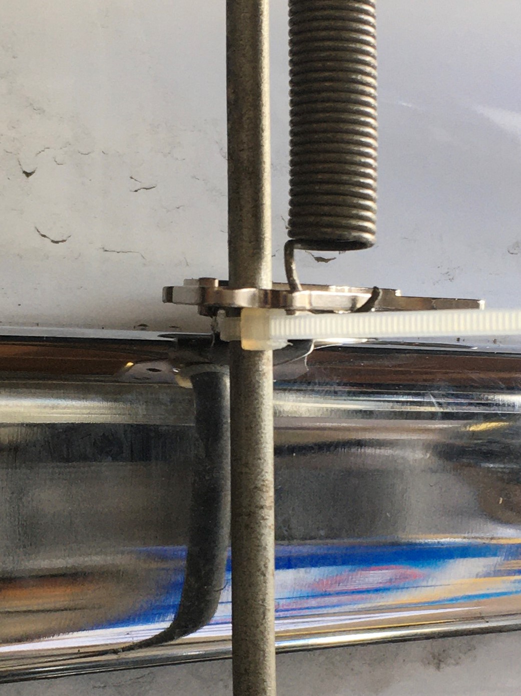 Attach the spring to the rod and the magnet.  The spring keeps the rod in intimate contact with the axle nut as you stroke the rear suspension.  You attach a zip tie around the rod and adjust it so that it just touches the underside of the magnet when the rear suspension is fully extended for baseline check (i.e. hanging).