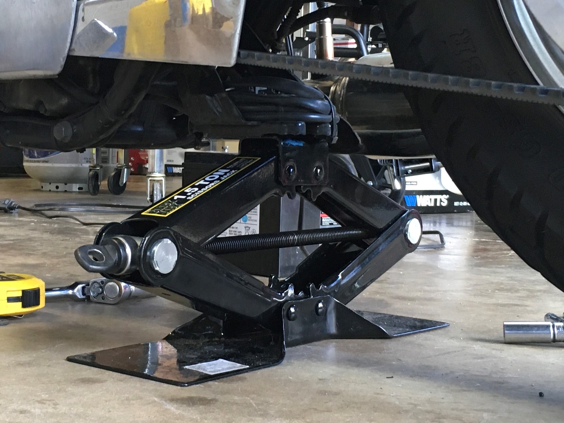 Use a scissors jack to raise and lower the rear end.