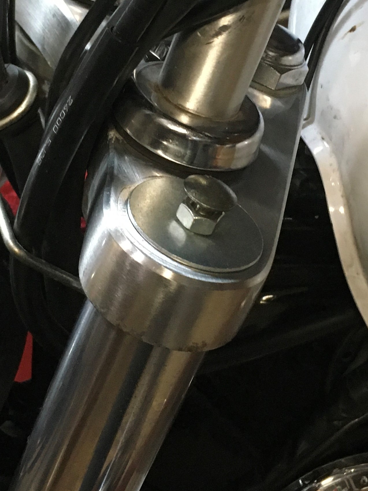 I thought that the small holes in the fender washers that I used might inhibit the air pressure in the upper region of the fork from equalizing across the washer.