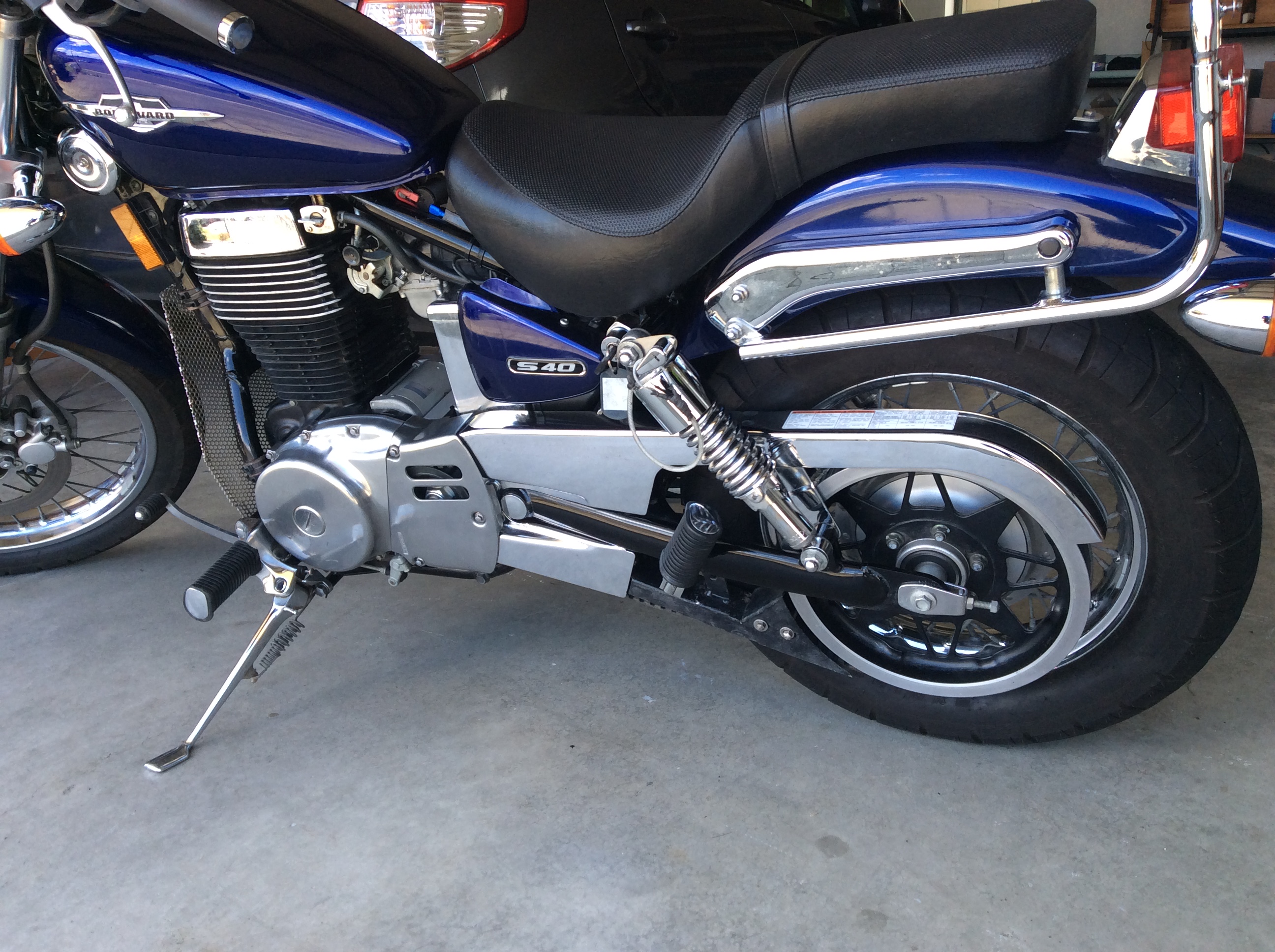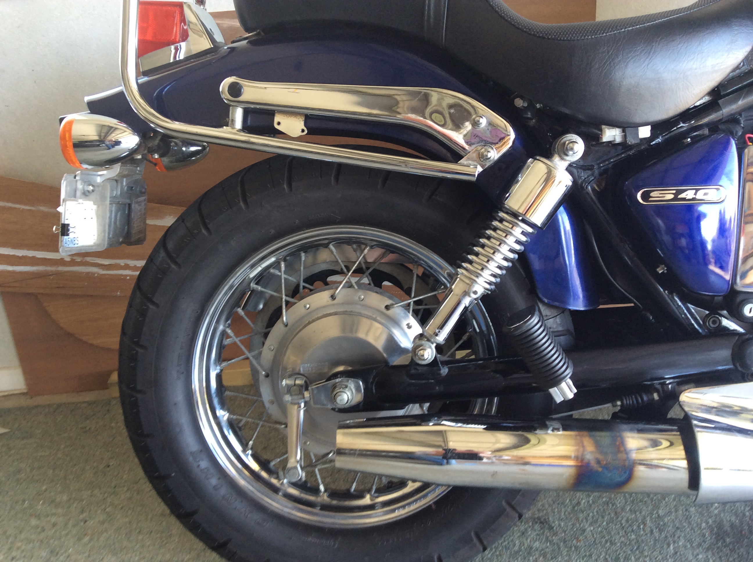 Hiko, your bike is so clean.  The White shocks look nice on there.  Same length I am considering.  That chrome rail helps to hide the gap between the fender and tire.  Good to know that you don't have any issues with the kickstand.  Do you feel that your ride is noticeably smoother with the White shocks or do you feel they are simply a good equivalent to the stock shocks?  Did they mitigate or eliminate the pile-driver effect?